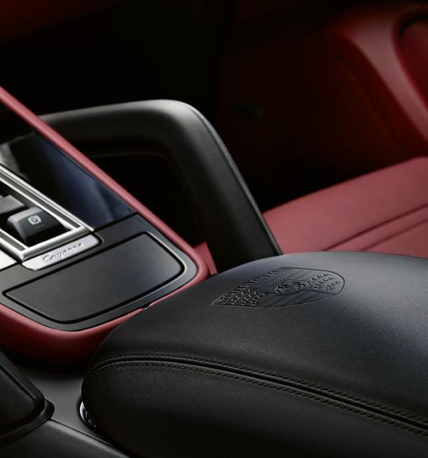 Mit geprägtem Porsche Wappen und teilweise mit Glattleder in Interieurfarbe bezogen.