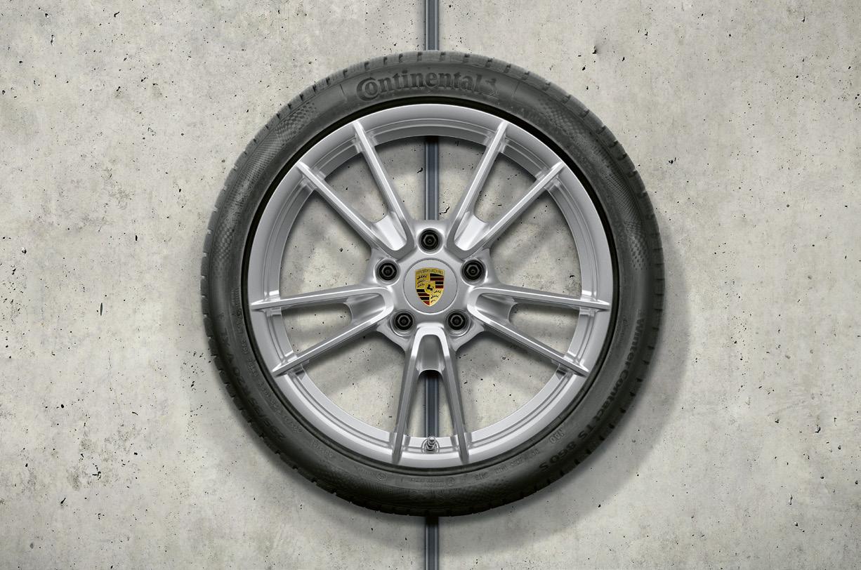 Leichtmetallräder in filigranem 5-SpeichenDesign mit Doppelspeichen. Nicht in Verbindung mit Porsche Ceramic Composite Brake (PCCB).