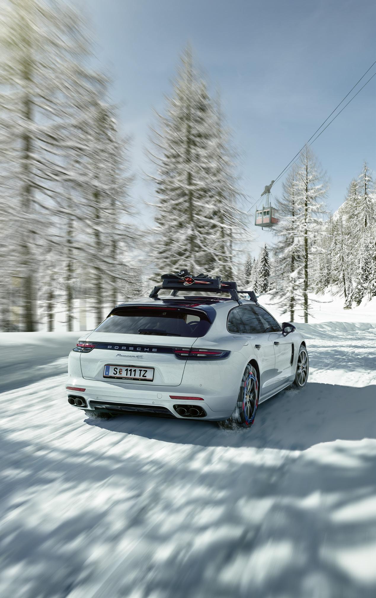 Der Winter kann ruhig kommen. Mit der richtigen Bereifung sind auch Temperaturen unter +7 °C souverän zu beherrschen. Das Material N-markierter Reifen von Porsche verhärtet unterhalb dieser Grenze nicht; während bei konventionellen Reifen die Bodenhaftung geringer wird und der Bremsweg länger.