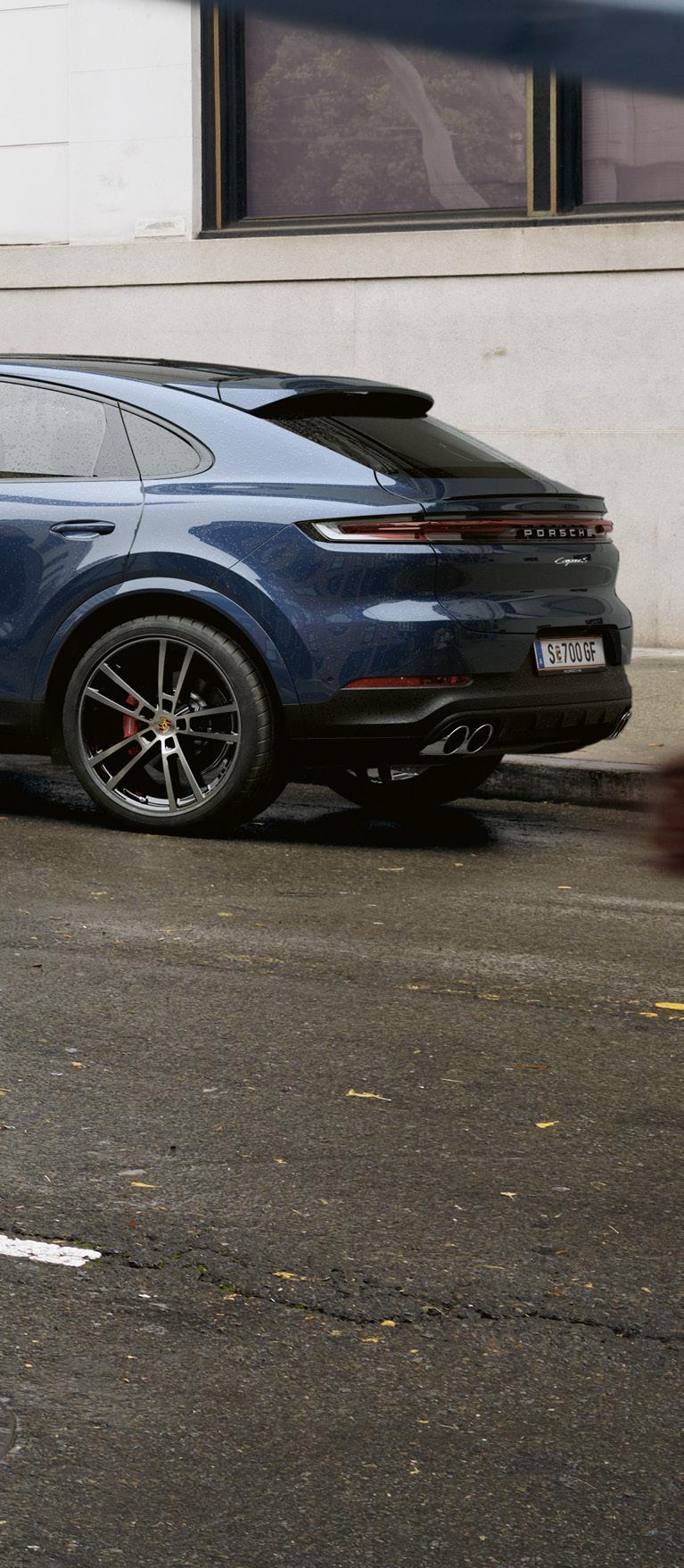Darstellung der Reifenlabel-Parameter in folgender Reihenfolge: Kraftstoffeffizienz, Nasshaftung, externes Rollgeräusch in dB(A), Rollgeräusch-Klasse. Die Kosten für eine eventuell anfallende Montage/Lackierung inkl. Arbeitsmaterial sind im Preis nicht inbegriffen. Alle Preise in Euro inkl. gesetzlicher MwSt. Aktionspreise sind gültig vom 01.03.2024 bis zum 31.07.2024 bei allen teilnehmenden Porsche Zentren bzw. Porsche Service Zentren in Österreich. Alle Angaben vorbehaltlich Druck- und Satzfehler. Gültig solange der Vorrat reicht. Bitte beachten Sie, dass sich durch Sonderausstattungen und Zubehör relevante Fahrzeugparameter, wie z. B. Gewicht, Rollwiderstand und Aerodynamik verändern und sich dadurch abweichende Verbrauchswerte und CO 2Emissionen ergeben können. Abbildungen können weiteres ev. erforderliches Zubehör oder nur für Fotozwecke eingesetzte Dekomaterialien zeigen. Taycan: Der Einfluss von Zubehörartikel auf die Reichweite wird von dem Routenplaner nicht berücksichtigt. 718 Boxster Range: Kraftstoffverbrauch kombiniert 8,9 – 10,9 l/100 km; CO 2 -Emissionen kombiniert 201 – 247 g/km. 718 Cayman Range: Kraftstoffverbrauch kombiniert 8,9 – 13,2 l/100 km; CO2-Emissionen kombiniert 201 – 299 g/km. 911 Range: Kraftstoffverbrauch kombiniert 10,1 – 13,8 l/100 km; CO 2-Emissionen kombiniert 229 – 313 g/km. Taycan/Taycan Cross Turismo/Taycan Sport Turismo Range: Stromverbrauch kombiniert 16,6 – 22 kWh/100 km; CO 2 -Emissionen kombiniert 0 g/km. Panamera Range: Kraftstoffverbrauch kombiniert 9,6 – 11,2 l/100 km; CO 2 -Emissionen kombiniert 218 – 253 g/km. Panamera E-Hybrid Range: Kraftstoffverbrauch kombiniert 1,2 – 1,7 l/100 km; Stromverbrauch kombiniert 26 – 38 kWh/100 km; CO 2Emissionen kombiniert 27,5 – 29,9 g/km. Macan Range: Stromverbrauch kombiniert 17,9 - 21,1 kWh/100km, Co2-Emissionen kombiniert 0 g/km. Cayenne Range: Kraftstoffverbrauch kombiniert 10,9 –13,4 l/100 km; CO 2 -Emissionen kombiniert 247 – 303 g/km. Cayenne E-Hybrid Range: Kraftstoffverbrauch kombiniert 1,5 – 2 l/100 km; Stromverbrauch kombiniert 33 – 46 kWh/100 km; CO 2Emissionen kombiniert 32,1 – 42,1 g/km. Herausgeber: Porsche Austria GmbH & Co. OG, Louise-Piëch-Straße 2, 5020 Salzburg. Druck- und Satzfehler sowie Änderungen vorbehalten. Stand 02/23.