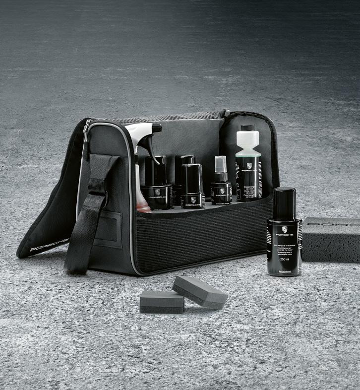 Inhalt: Wasch-Shampoo, Verdeckreiniger, Hartwachs, Verdeckpflege, Scheiben-/Innenscheibenreiniger, Lederreiniger/-pflege, Tücher, Schwämme und Fensterleder.