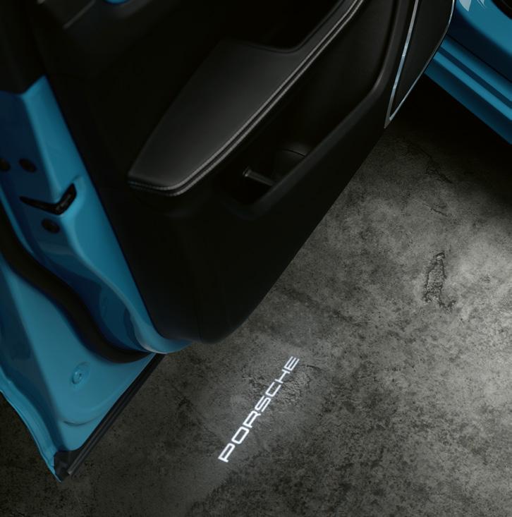 Die Projektion eines weißen „PORSCHE“-Schriftzugs auf der Fahrer- und Beifahrerseite sorgt für einen exklusiven Auftritt. Die zwei Stück eignen sich perfekt für die Anbringung in den Seitentüren und setzen stilvolle Akzente bei jeder Fahrt.