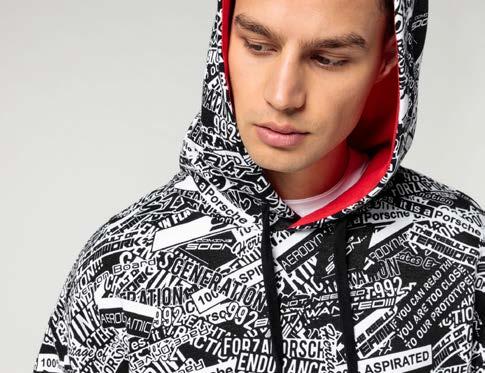 Unisex sporty hoodie with kangaroo pocket. The allover print is inspired by the camouflage exterior of the 911 GT3 R (992). Porsche Motorsport label on the lower left edge of the kangaroo pocket. 80% cotton, 20% polyester.