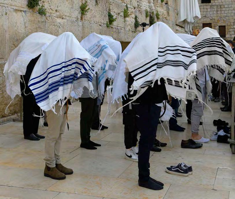We huren een auto en verlaten Tel Aviv in noordelijke richting. We stoppen bij Caesarea, waar archeologische overblijfselen van bouwwerken uit de tijd van de Romeinse koning Herodus de Grote (37-4 v.Chr.) te vinden zijn. De ruïnes van een aquaduct vlak aan zee vormen een fotogeniek plaatje. Door de ronde openingen kijken we op een azuurblauwe zee. Twee ultraorthodoxe joden arriveren met een picknickmand. Fier dragen ze hun talliet, het typische poncho-achtige kledingsstuk met de lange kwastjes aan de hoeken. Die zouden een numerieke symboliek hebben voor de 613 geboden en verboden waaraan ze zich dienen te houden. We vragen of we een foto van hen mogen maken. Na wat geaarzel mag het, als we de foto maar niet op sociale media plaatsen. Ze staan er wat onwennig bij. Waar we vandaan komen, willen ze weten.‘België,Antwerpen’, antwoorden we. 'Ha, Antwerpen!’, er verschijnt een brede lach op hun gezicht. ‘Daar zijn we geweest. In de Lamorinièrestraat.’ Kan kloppen, want die ligt midden in de joodse wijk. We zullen tijdens onze reis nog vaker vaststellen dat er behoorlijk wat contact is tussen de ultraorthodoxe gemeenschap in Israël en die in Antwerpen en Brussel.