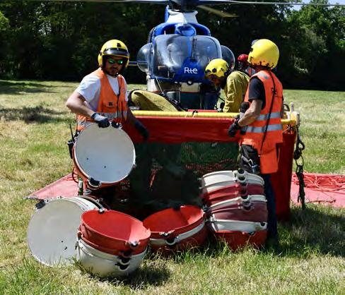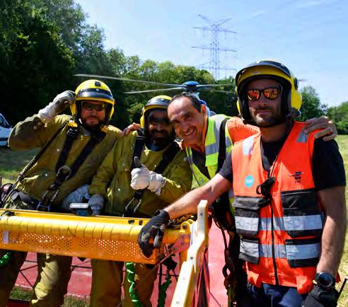 Uiteraard moet je over heel wat expertise beschikken om zo’n bijzondere klus uit te voeren. Het Franse Airtelis, dochteronderneming van RTE (Réseau de Transport d’Électricité) en het bedrijf dat Elia hiervoor onder de arm nam, heeft al meer dan dertig jaar ervaring op dit domein. We trekken naar Zandhoven om een team van dichtbij aan het werk te zien. ‘We doen dit werk al zolang dat we alle kritieke en moeilijke situaties al wel eens meegemaakt hebben en we nu op een punt gekomen zijn dat we op alles het juiste antwoord en de juiste reactie hebben’, weet Bruno Baronian ons te vertellen. Bruno werkt voor Airtelis en is het aanspreekpunt voor de klant, in dit geval Elia. ‘Wat wij doen bestaat uit perfect gecoördineerd teamwerk tussen de werkmannen op de grond, de plaatsers die in de gondel staan en de piloten. Iedereen weet wat hij moet doen en speelt vlekkeloos op elkaar in.’ We zien dat de helikopter is uitgerust met spiegels en camera’s zodat de piloten perfect kunnen zien wat er zich onder hun toestel afspeelt. Terwijl de helikopter loodrecht opstijgt – het is niet de bedoeling dat de gondel gaat slingeren - begeleiden vier werkmannen nauwgezet de touwen waarmee de gondel aan de helikopter hangt. Het is uitermate belangrijk dat de touwen bij het opstijgen en landen niet in de war raken door de turbulentie die de wieken veroorzaken. Met ingehouden adem kijken we hoe de mand de lucht in gaat en de helikopter zich trefzeker boven de hoogspanningskabel positioneert waar de plaatsers aan het werk moeten. Deze dragen een speciaal veiligheidspak zodat de kabels gewoon onder stroom kunnen blijven staan terwijl de bollen bevestigd worden. Onverstoord en geroutineerd plaatsen de mannen de grote bollen. Dat ze dit doen op een hoogte van 60 meter zwevend aan een helikopter is in onze ogen gekkenwerk, maar voor hen is het duidelijk een job als een ander. Respect! ♦