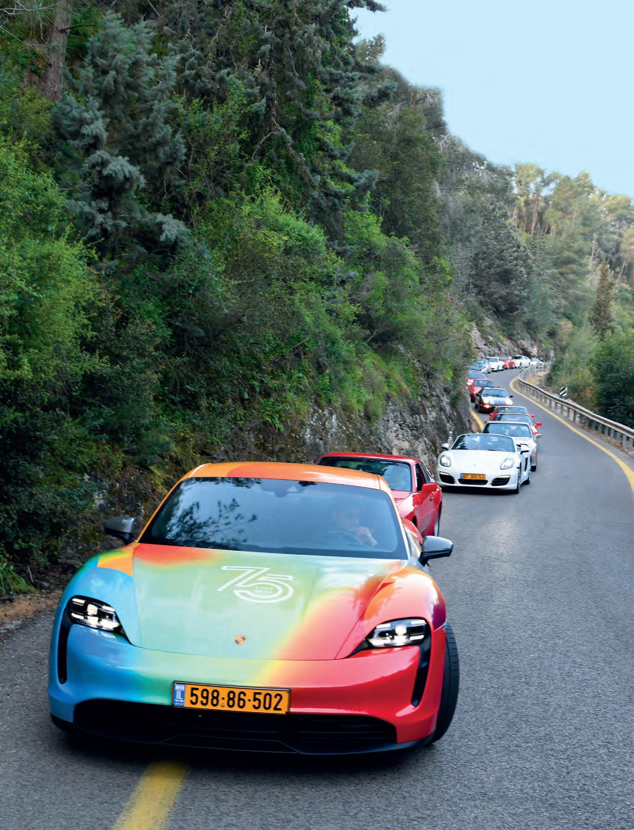 Het is zaterdagmorgen vijf uur. Yaroslav Stepanov - Porschefanaat in hart en nieren en voorzitter van de Porsche Classic Club - heeft ons zonet opgepikt aan ons hotel. Voor het bezoek van Porschist aan Israël heeft hij een roadtrip georganiseerd die ons door het bergachtig landschap tussen Tel Aviv en Jeruzalem zal voeren. Aan het verzamelpunt komt de ene na de andere Porsche gezwind aangereden. Thuis heeft Yaroslav een Porsche 944 Turbo op stal staan, maar voor deze speciale gelegenheid heeft hij het paradepaardje van Porsche Centre Tel Aviv meegekregen: een blitse Taycan in een opmerkelijk kleurrijk jasje. Op de zijkant pronkt de internationale slogan van het Porsche-feestjaar ‘Driven by Dreams’ . En de rit van vandaag ís een droom. Yaroslav leidt het indrukwekkende konvooi van zo’n 25-tal Porsches langs kronkelende bergwegen voorbij prachtige landschappen. De Porschisten drukken het gaspedaal stevig in en kunnen hun rijvaardigheden bewijzen in de vele scherpe bochten. Er is een reden waarom ze allemaal zo vroeg uit de veren zijn. Nu, nog voor het ochtendgloren, is er niemand anders op de weg en voelen ze zich - al is het maar voor enkele uurtjes - heer en meester.