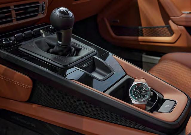 Een bijzondere blikvanger aan de passagierszijde is het bajonetsysteem voor de bevestiging van een stopwatchmodule. Hierin past een door Porsche Design ontworpen stopwatch met een analoog en een digitaal display. De klokken zijn geschikt voor race- en rallygebruik. Ze geven onder meer rondetijden weer.