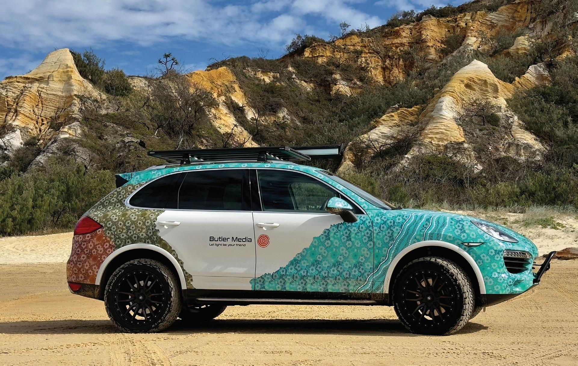 We maakten er een onvergetelijke roadtrip in het gezelschap van twee inspirerende mensen: Michael Butler en Emma Stenhouse. Michael is een Australische documentairemaker en trotse eigenaar van twee Cayennes waarvan één schitterend gewrapped in kleurrijke Aboriginalkunst.