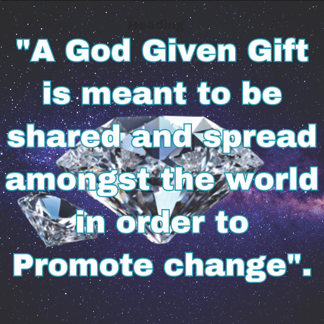 Quote 1- “A God Given Gift is meant to be shared and spread amongst the world in order to Promote change”.