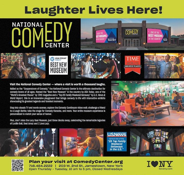 Named one of TIME magazine’s “World’s Greatest Places,” honored by USA Today as one of the “Best New Attractions” in the country, and recognized by People magazine and CBS Sunday Morning, the National Comedy Center in Jamestown, NY is not your typical museum—it’s an immersive experience that delivers laughter, fun, and unforgettable moments.
