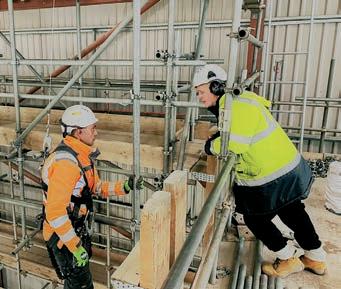 A vital part of the project was the installation line of the lifting beam being marked out while working from scissor lifts