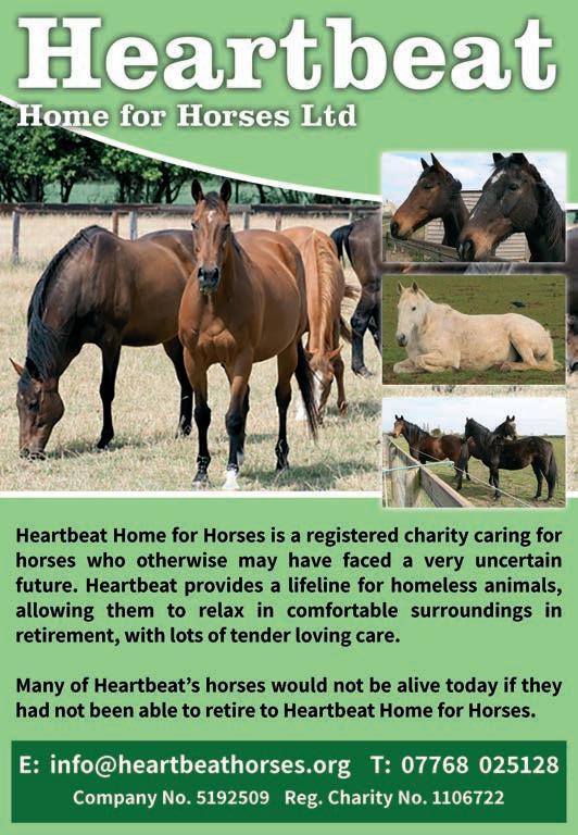 • For more information on either charity please contact Tracey Pettitt, stud manager or David Clarke, finance director, on 07768 025128. Heartbeat Homes for Horses, Sink Farm, St David’s Lane, Hollesley, Woodbridge, Suffolk IP12 3JR