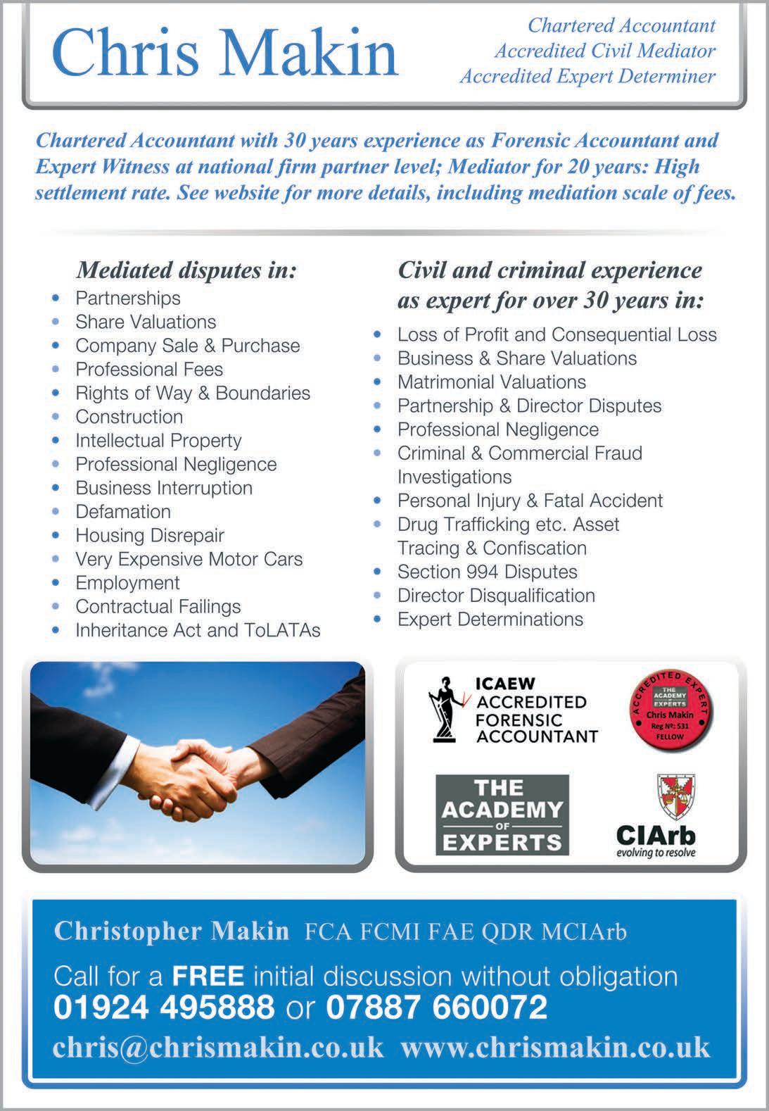 Chris Makin was one of the first chartered accountants to become an Accredited Forensic Accountant and Expert Witness. He is also an accredited civil and commercial mediator and an accredited expert determiner. Over the last 30 years he has given expert evidence at least 100 times and worked on a vast range of cases.