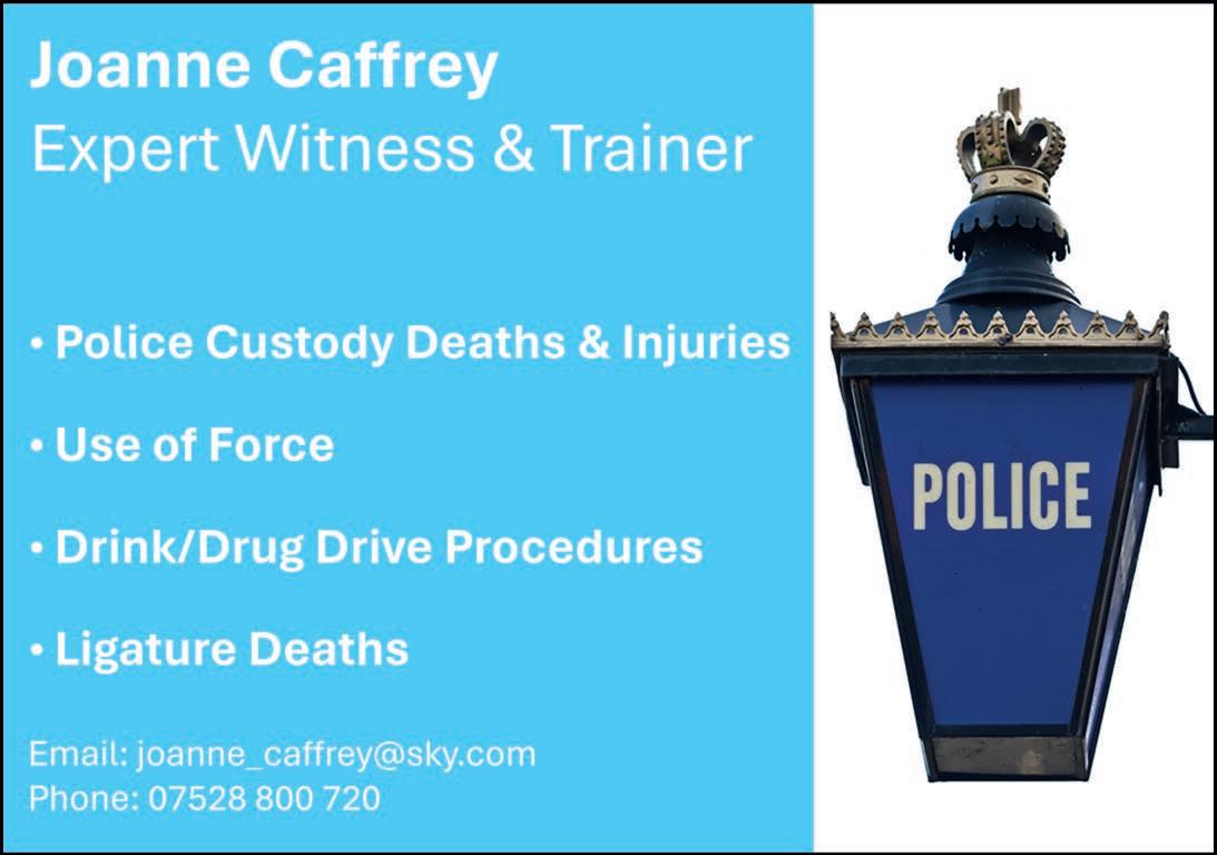 Ms Joanne Caffrey undertakes expert witness instructions in cases relating to the following police topics: