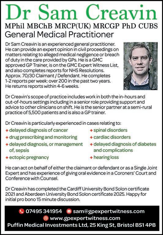 T: 07464 425 444 E: marstonmedicolegal@gmail.com W: www.marstonmedicalpractice.co.uk