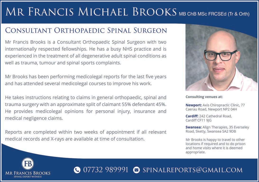 T: 07732 989991 E: brooks.francis@gmail.com / spinalreports@gmail.com