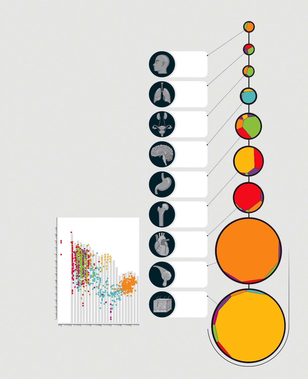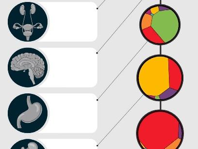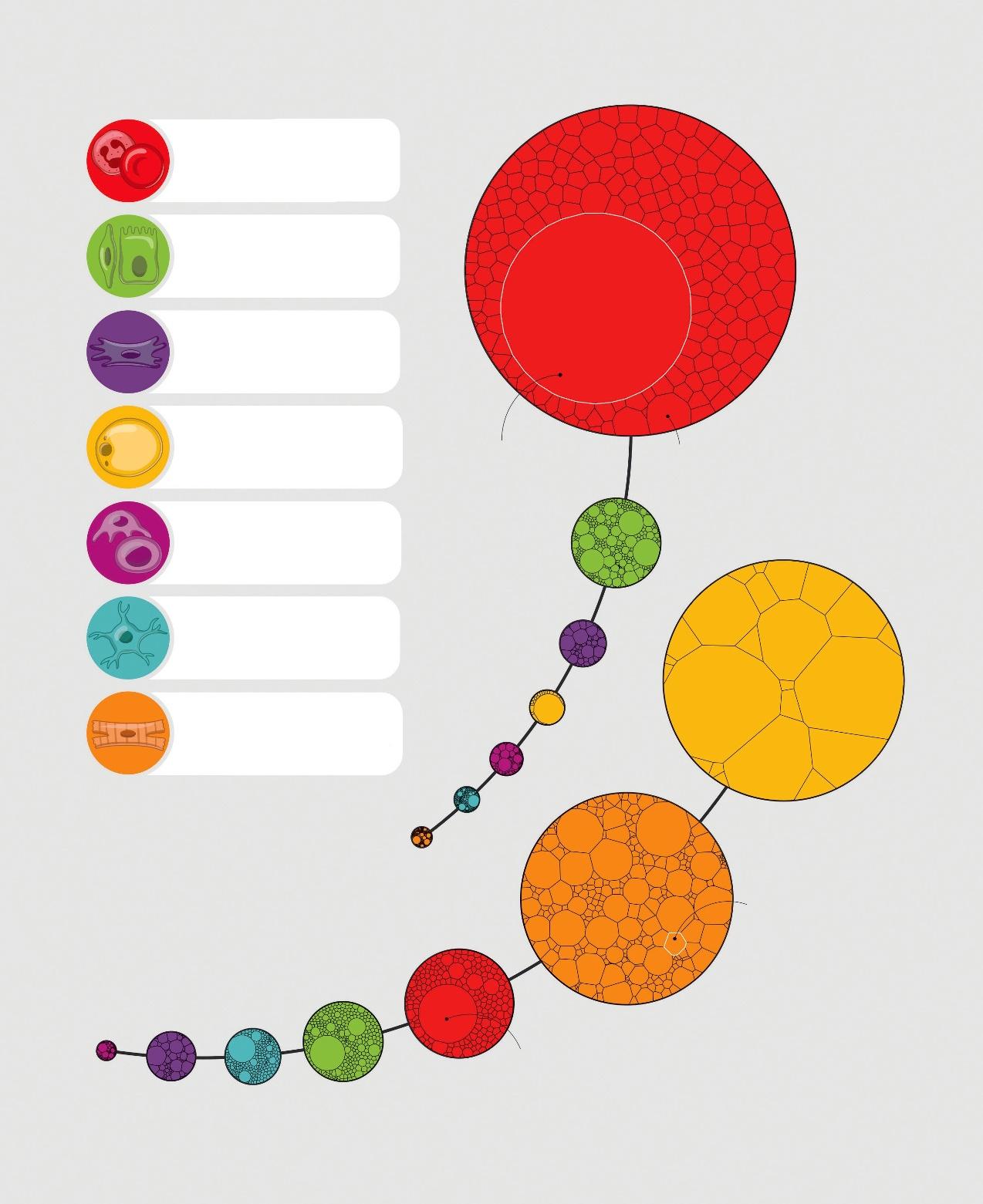 Chaque cercle correspond à un type cellulaire et, à l’intérieur, chaque polygone à un sous-type.