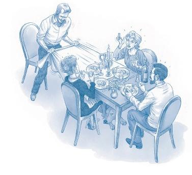 C’est la vitesse à laquelle la nappe d’une grande table dressée pour seize convives a été tirée sans que les objets ne bougent. Pour mener à bien cette expérience, les animateurs de l’émission américaine « Street Science » ont placé des feuilles de plastique entre les objets et la nappe afin de réduire les frottements et accroché celle-ci par un long câble… à une voiture de course.