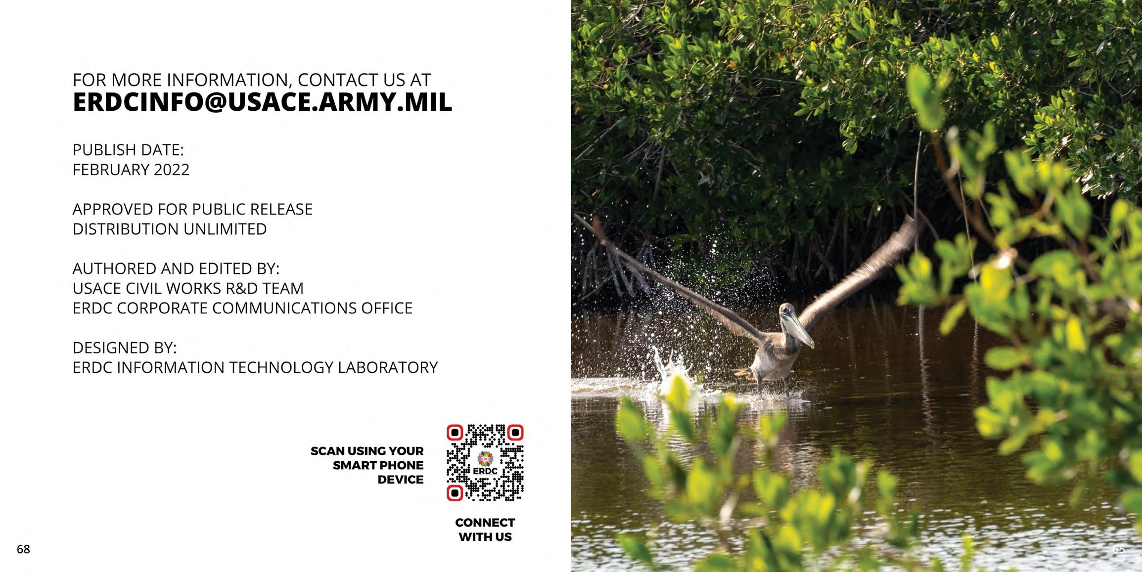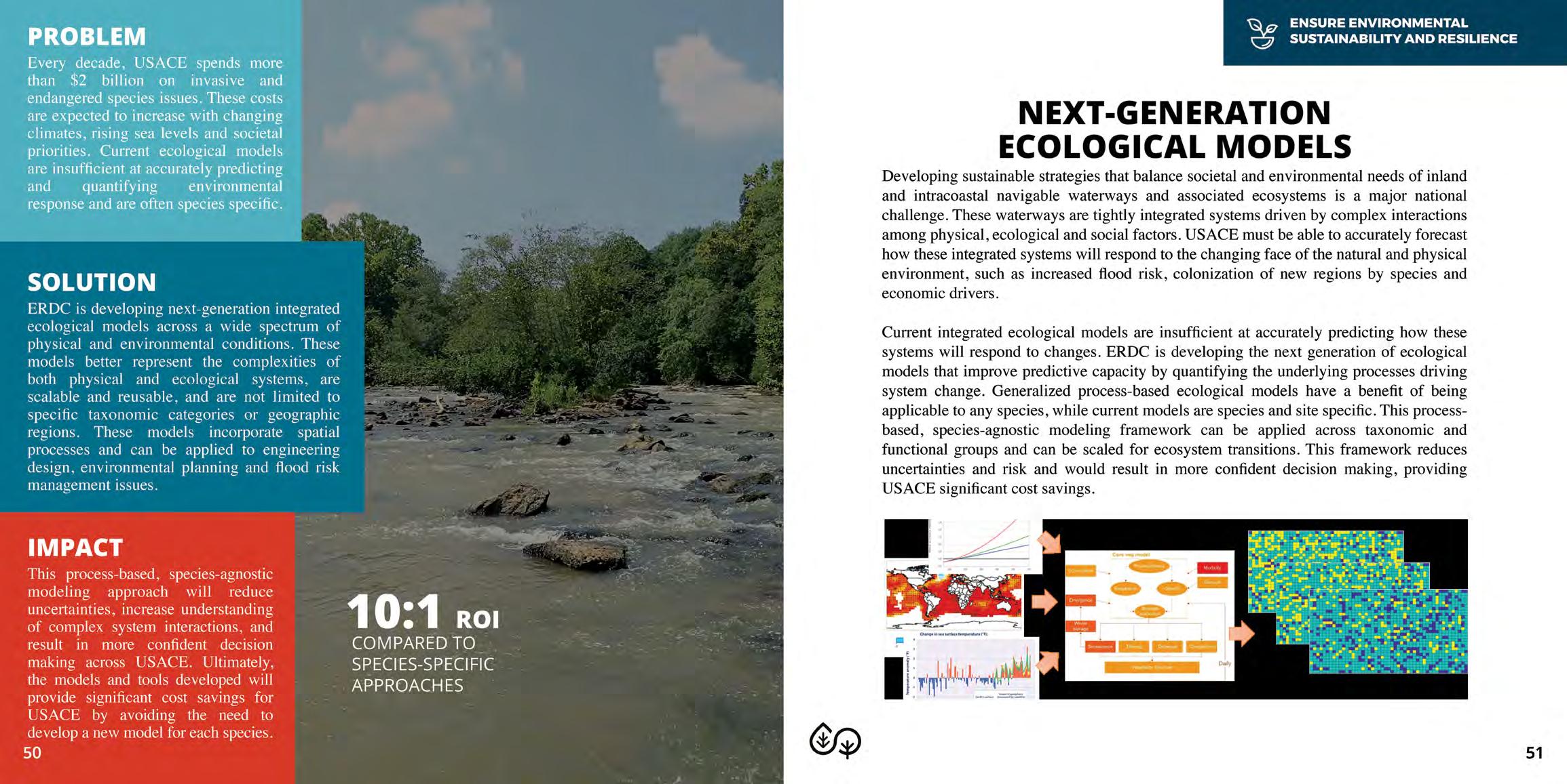 During a 2021 visit to the U.S. Army Engineer Research and Development Center (ERDC), Lt. Gen. Scott Spellmon, the 55th Chief of Engineers and Commanding General of the U.S. Army Corps of Engineers (USA CE), issued a challenge to elevate and open a bold new era for USACE R&D. Responding to that challenge, USACE leaders developed the USACE Research and Development Strategy and identified the Top 10 US ACE R&D Priorities to address the nation's toughest challenges through multi-disciplinary, collaborative and proactive approaches. These priorities span all USACE missions - Warfighter Support, Installations and Operational Environment Support, Interagency and International Services, Military Engineering and Operations, and Civil Works. USACE endorsed six Civil Works Strategic Focus Areas (SFAs) to address these unique challenges. SFAs represent capabilities required for USACE to achieve these Top 10 R&D priorities by innovating and developing solutions to problems impacting Civil Works mission delivery now and i