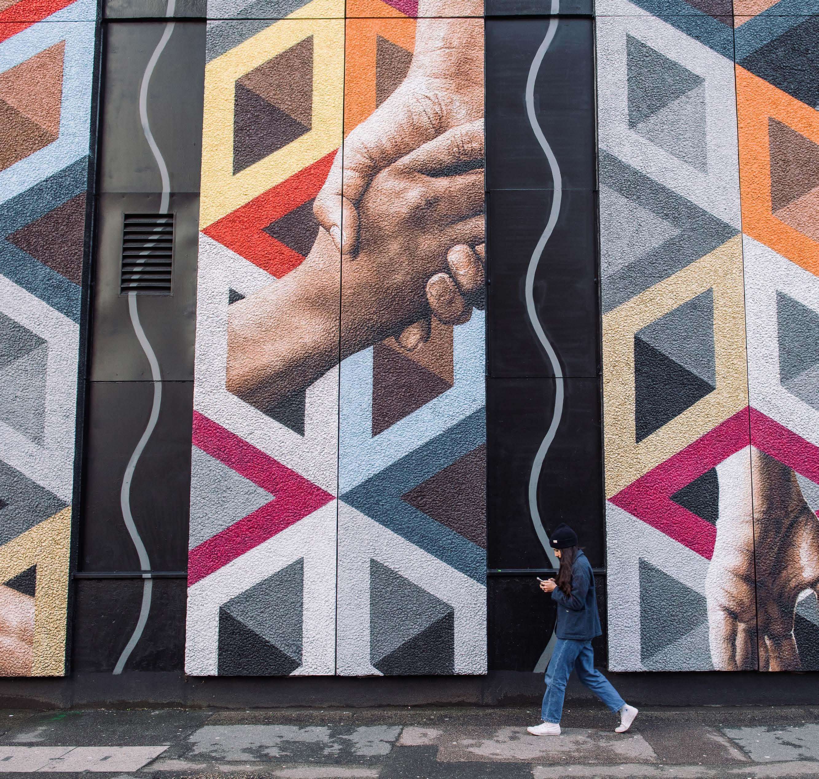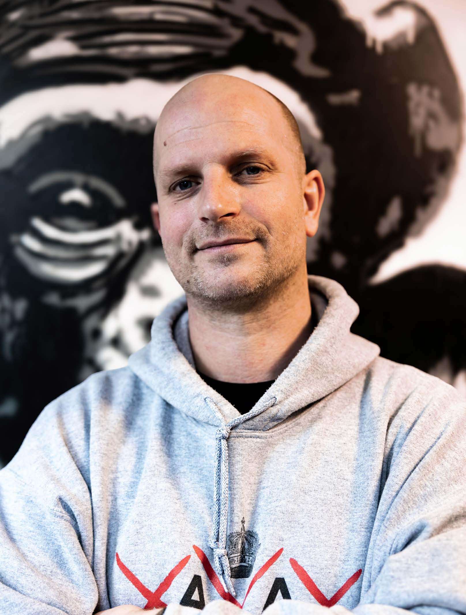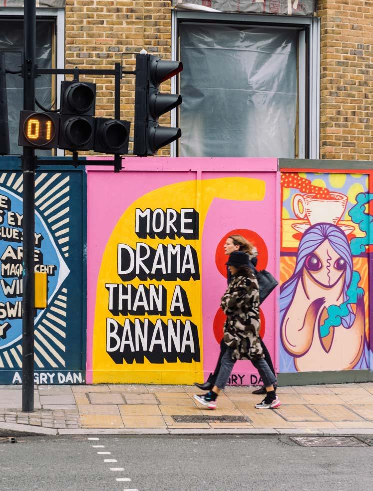 D*Face is globally recognised for his supersized, hand-painted murals in cities like LA, Tokyo, Berlin and (of course) London. Stickers, though, are what put him on the map. He reckons he’s stamped “hundreds of thousands” of them. But this iteration was born from a broken wrist as much as it was connecting with his roots as an artist. “I couldn’t paint” he explains, so he needed something post-skateboarding accident to keep his creative bone occupied (while the physical