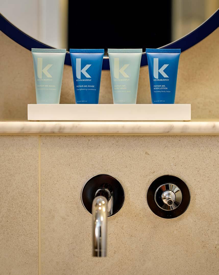 With sustainability being a key priority for art’otel, KEVIN.MURPHY, and VANITY GROUP, we’re moving to a larger format amenity solution that you’ll spot floating magically on the bathroom walls. The larger format bottles are made from OceanBound material, rescuing it from a destiny of floating in the sea, and are fully recyclable so they can continue their journey and maybe rejoin us