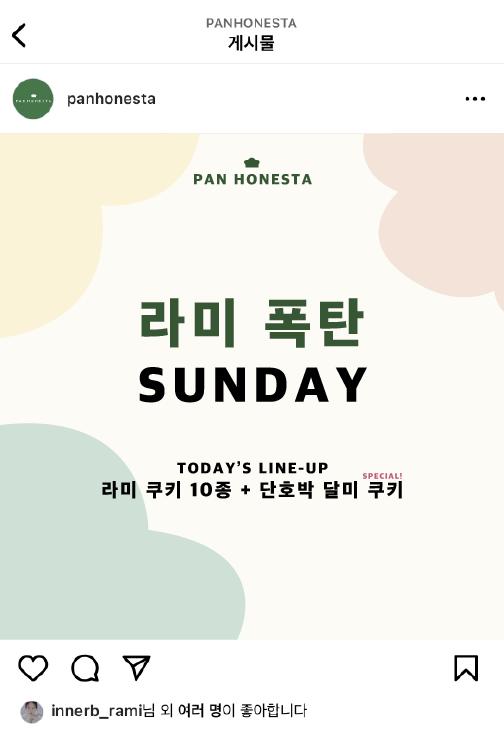에서 ‘일요일은 라미쿠키로 빵커(빵+커피)하는 날’이