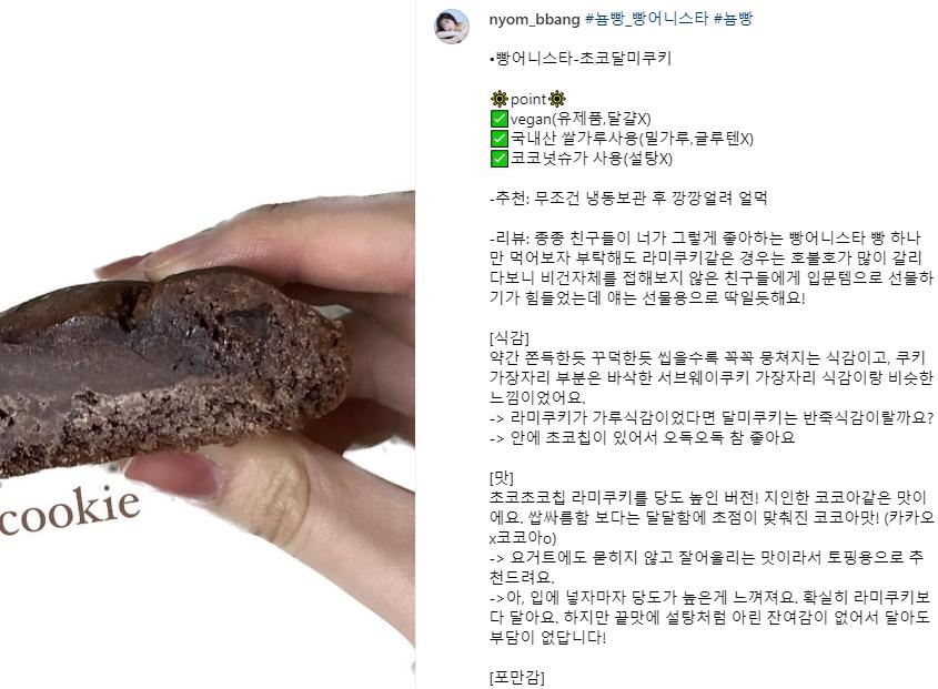 빵어니스타 쿠키를 먹는 상황을 인스타그램 스토리