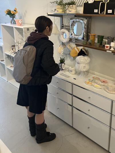 성수의 카페에 맞은 편 여성이 입고 있는 개성적인 옷,