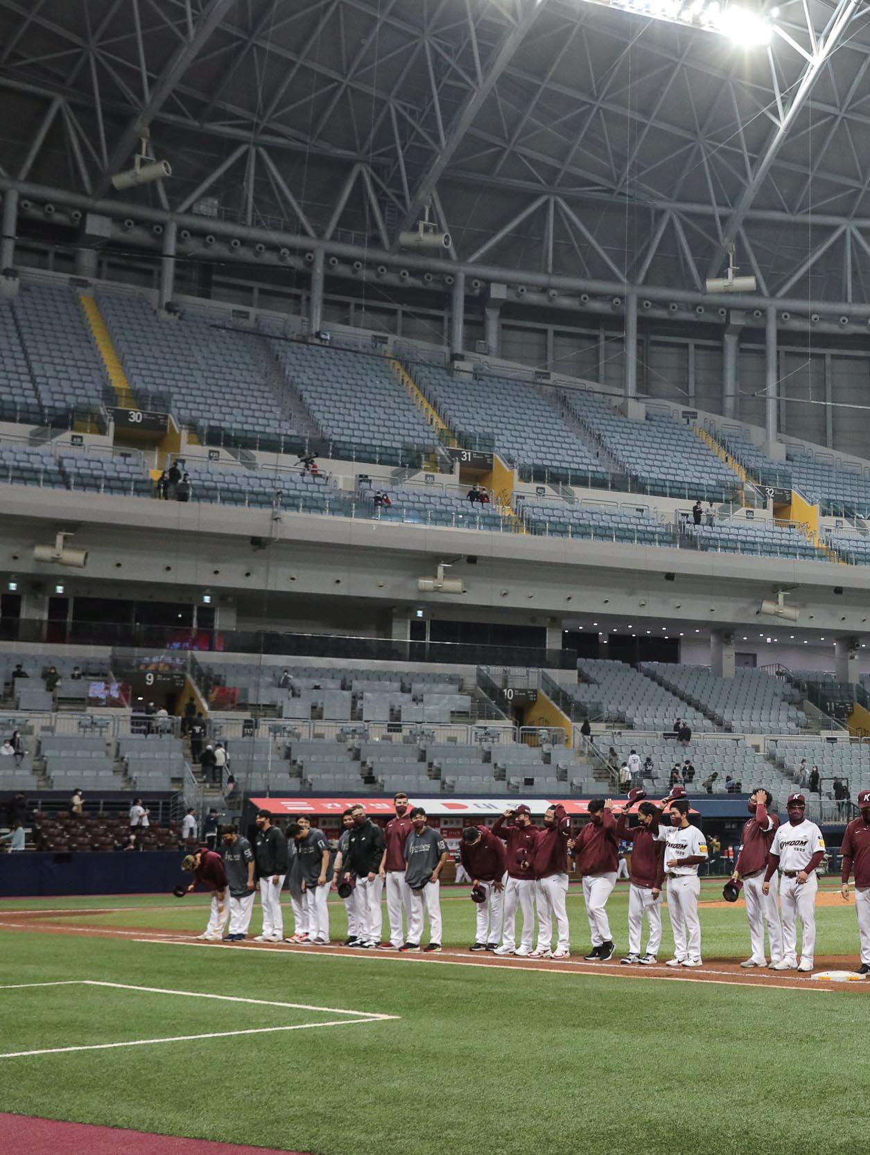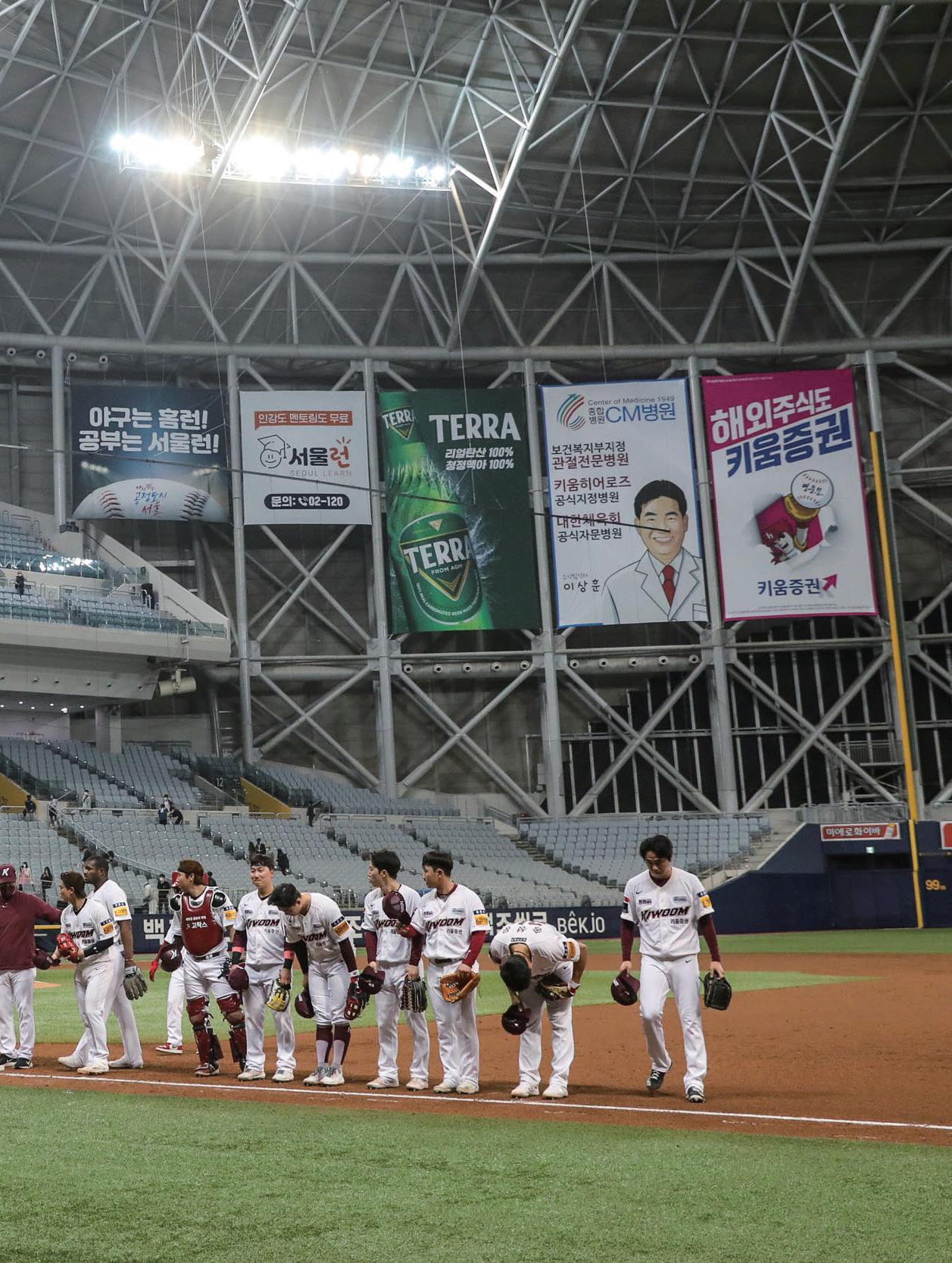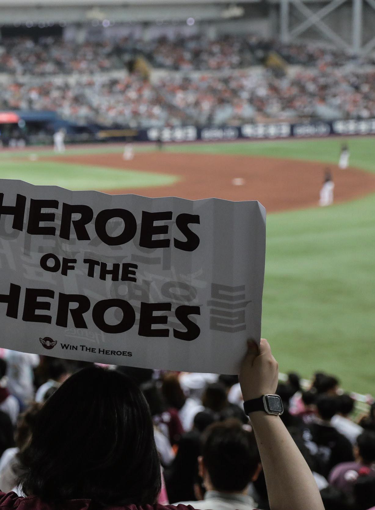 아직 그들에겐 백 한 경기가 남아있으니까요! 아직 영웅들에겐 올라갈 힘과 의지와 시간이 충분합 니다. 저는 다시 묵묵히 멀리서, 또 가까이서 히어로즈를 둘러싸는 보호막이 되어 열렬히 응원하겠습 니다. 모든 KBO 선수 및 구성원, 그리고 그들을 응원하는 많은 이들이 다치지 않고 얼굴엔 미소가 가 득한 한 해가 되기를 기원합니다. 감사합니다.