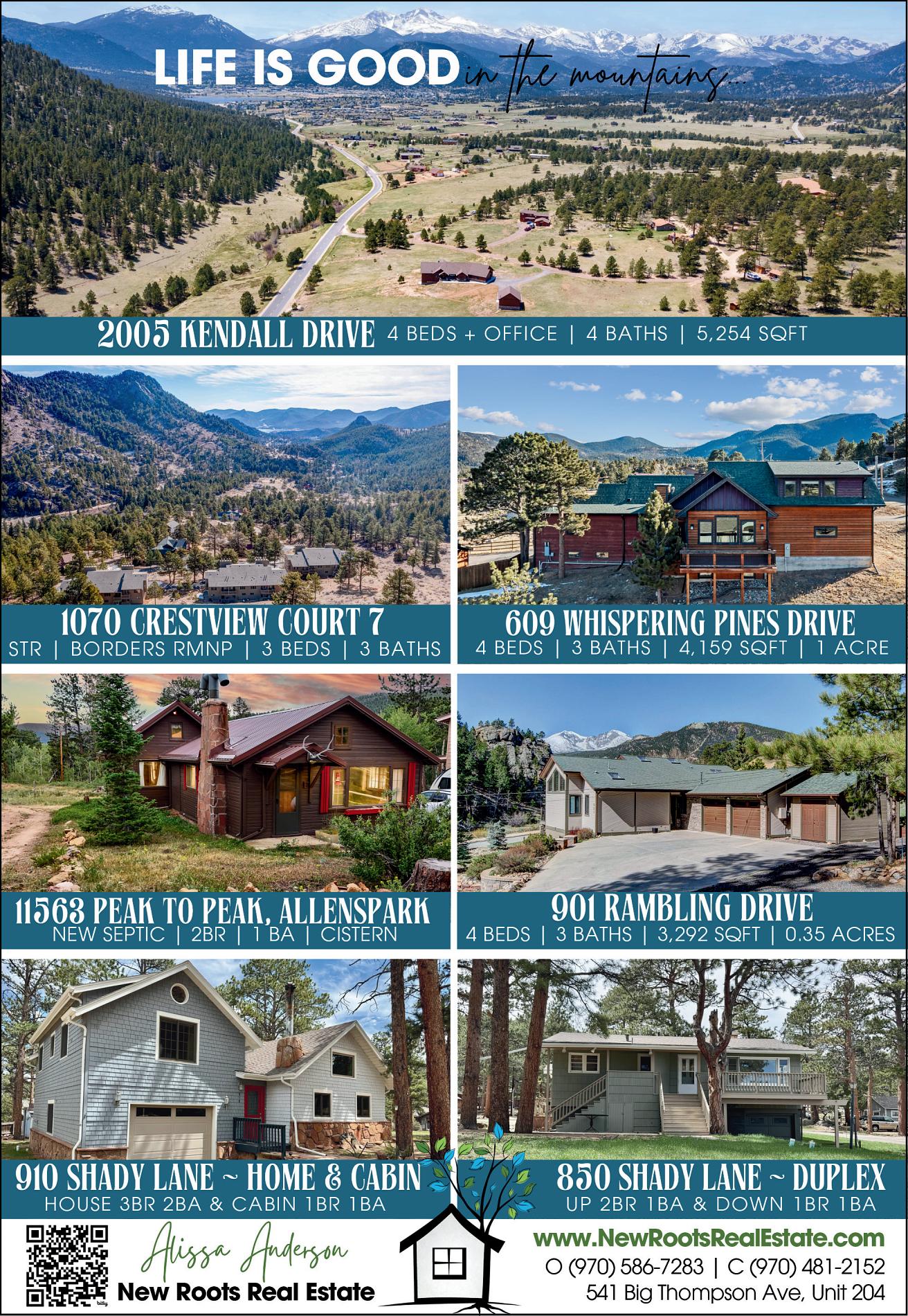 Your dream mountainhome.Whether it’s your full-time residence or afamily getaway, this place is easy to fall in love with. With 5bedrooms and 6bathrooms, there’s plenty of space for everyone to relax andfeel at home. The design strikes the perfect balance between modern comfort and mountain design, with high-end log touches and unique craftsmanship throughout. From the moment you step inside, you’re greeted by the calming sound of an inside stream, a spacious great room filled with natural light, and sweeping mountainviews from the expansive patio. The homefeatures updated bathrooms, acozy wood-burning fireplace, and aspacious primary suite with its own en-suite bath. Step out onto the large concrete deck and unwind in the private hot tub, surrounded by the fresh alpine air. The fully finished basement adds even more flexible space-perfect for agameroom, guest quarters, or extra living area. Located in a quiet, well-keptneighborhood just minutes from downtown Estes Park,you’llbeclose to local shops, restaurants, and year-round events. And for those who love the outdoors, hiking trails, fishing spots, andwildlife watching are all right nearby. This home truly hasitall.