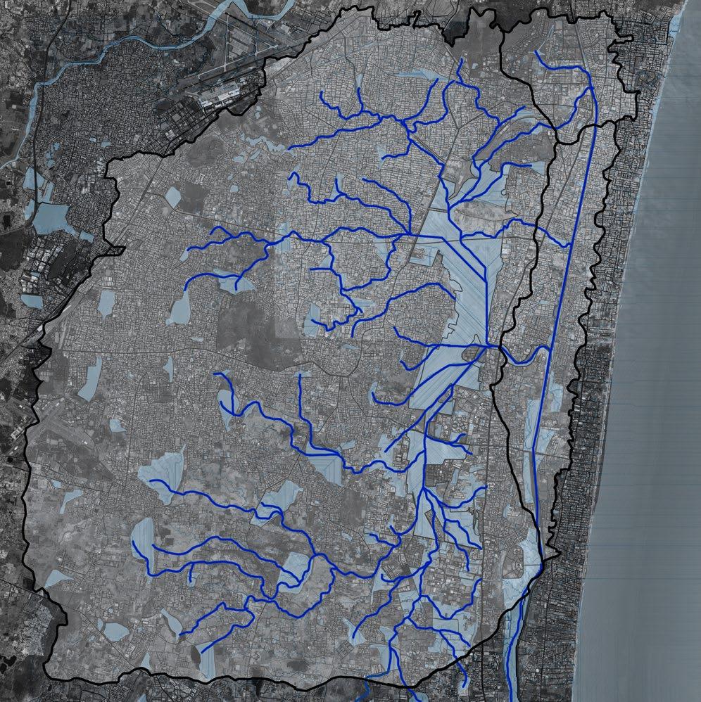 Pallikaranai marshland is a freshwater and partly saline marsh located in Chennai, India, along the Coromandel coast. It is the city’s only remaining wetland ecosystem, and it performs a vital role in acting as a sponge, absorbing excess water and preventing flooding. It also recharges the groundwater table, serves as a carbon sink, and provides a habitat for 334 flora and fauna species. Pallikaranai Marsh drains over 250 km2 of south Chennai, containing 30 wetlands, via two outlets, Okkiyam Madavu and the Kovalam Creek and flows into the Bay of Bengal. This system of the watershed is disturbed by encroachments in the marshlands like road and infrastructure development, landfill dumping, sewage water intrusion and invasive species etc. Given that, it’s located on the fringes of the city, it has shrunk by more than 90% over the decades due to the urbanization pressure. It is currently a designated Ramsar site and is protected from further disturbances. The aim of the project is to revive the ecology of the marsh, restore the edge and habitat conditions of the marsh and help people reconnect with the marsh. The project’s vision was developed using systematic thinking, and its key phrases in the title “REVIVE|RESTORE|RECONNECT” served as the framework for the project as a whole. As project outcomes through implementation guidelines, design strategies and interventions were ideated as a proposal for the reviving of the marshland.