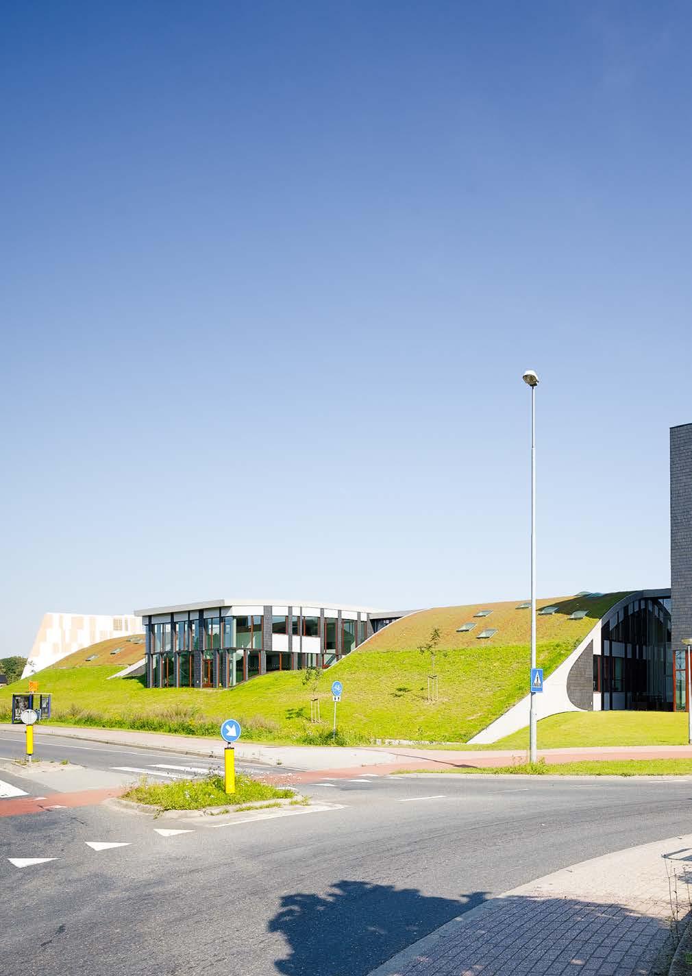 Just outside the centre of Doetinchem, between the Energieweg and an adjacent residential district, the Graafschap College is situated with its more than 700 pupils. This area forms the transitional zone between the small-scale residential district and the through-road. Together with the adjacent VMBO (preparatory secondary vocational education) Metzo College, the Graafschap College makes a scenic connection between these two spheres. As a part of this, the green covered slopes merge into the grass roof of the Graafschap College. The various school functions have been placed under this grass roof.