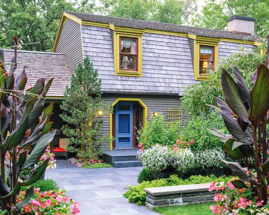La végétation mature structure l’espace avec des jeux de volumes raffinés, comme en témoignent ces Acer ginnala, rehaussés du sol grâce à des bacs en acier inoxydable peints dans les mêmes tons que ceux de la résidence.