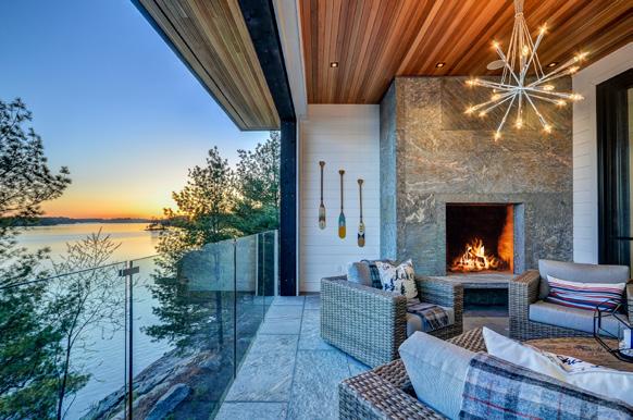 Our cover story is a perfect example of the old real estate aphorism, “The three most desirable assets of real estate are location, location and location.” Just minutes from Port Carling by boat or car, this brand-new, contemporary waterside beauty combines the best of modern cottage living with state-of-the-art amenities, 5,000 feet of living space, a location just 30 feet from the water’s edge – a rare find in a new cottage! – and your very own unforgettable, heartstopping Lake Rosseau view.