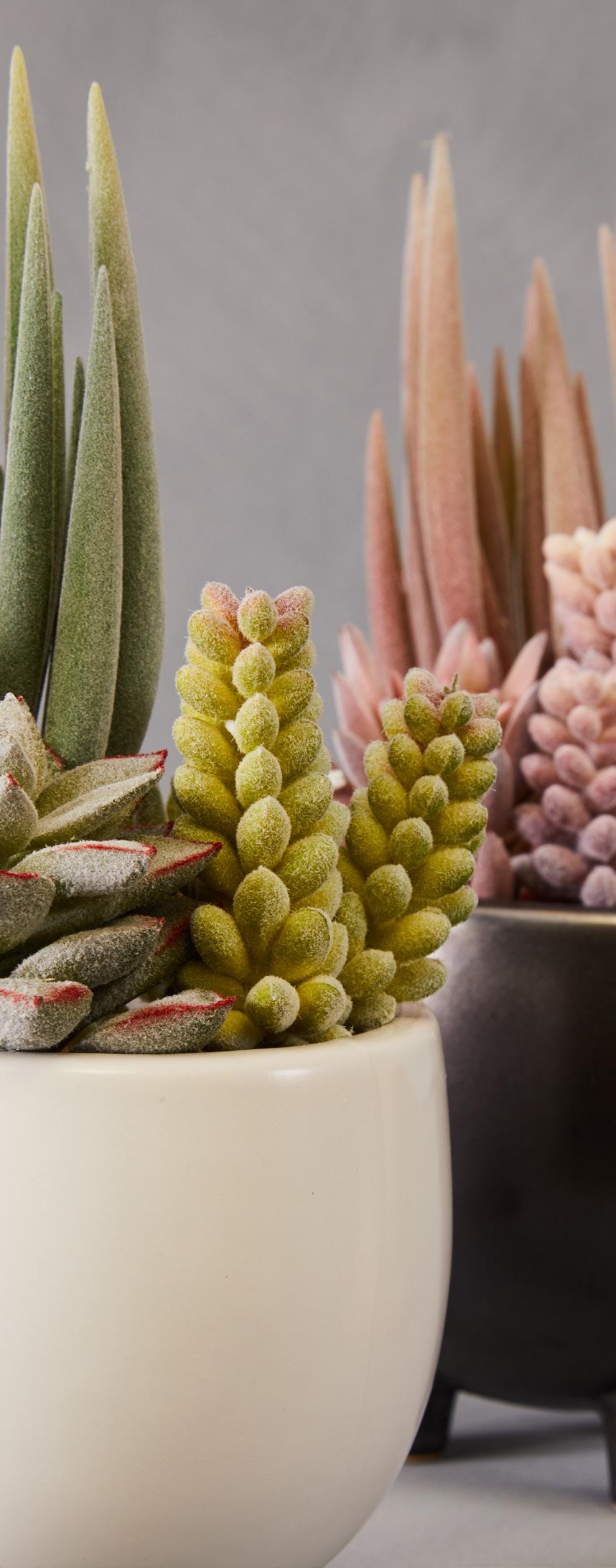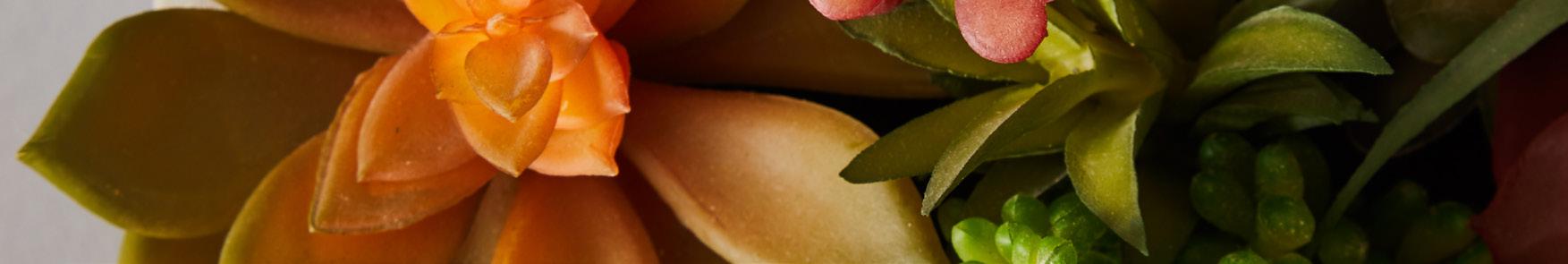 Embrace the green trend by incorporating beautifully presented artificial plants into a living space. The Fiori range of faux flowers, plants and succulents add texture, shape, and a pop of colour to room settings.