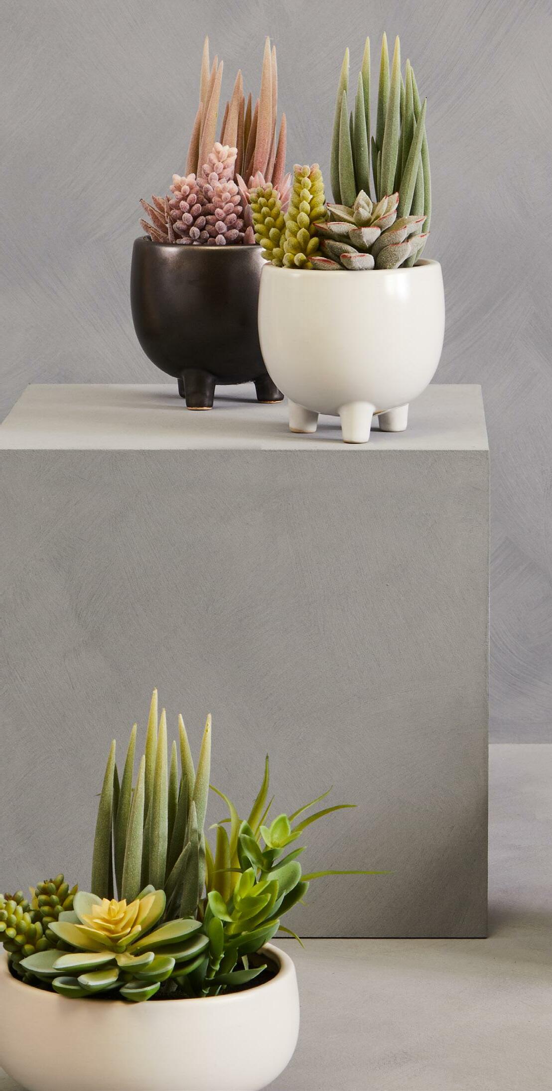 FROM TOP TO BOTTOM: FIORI GREY CERAMIC POT MIXED SUCCULENTS | 2907106 FIORI CERAMIC POT MIXED SUCCULENTS | 2907093 FIORI LARGE CERAMIC POT MIXED SUCCULENTS | 2907094 FIORI GREY CERAMIC POT MIXED SUCCULENTS | 2907107 72 FIORI