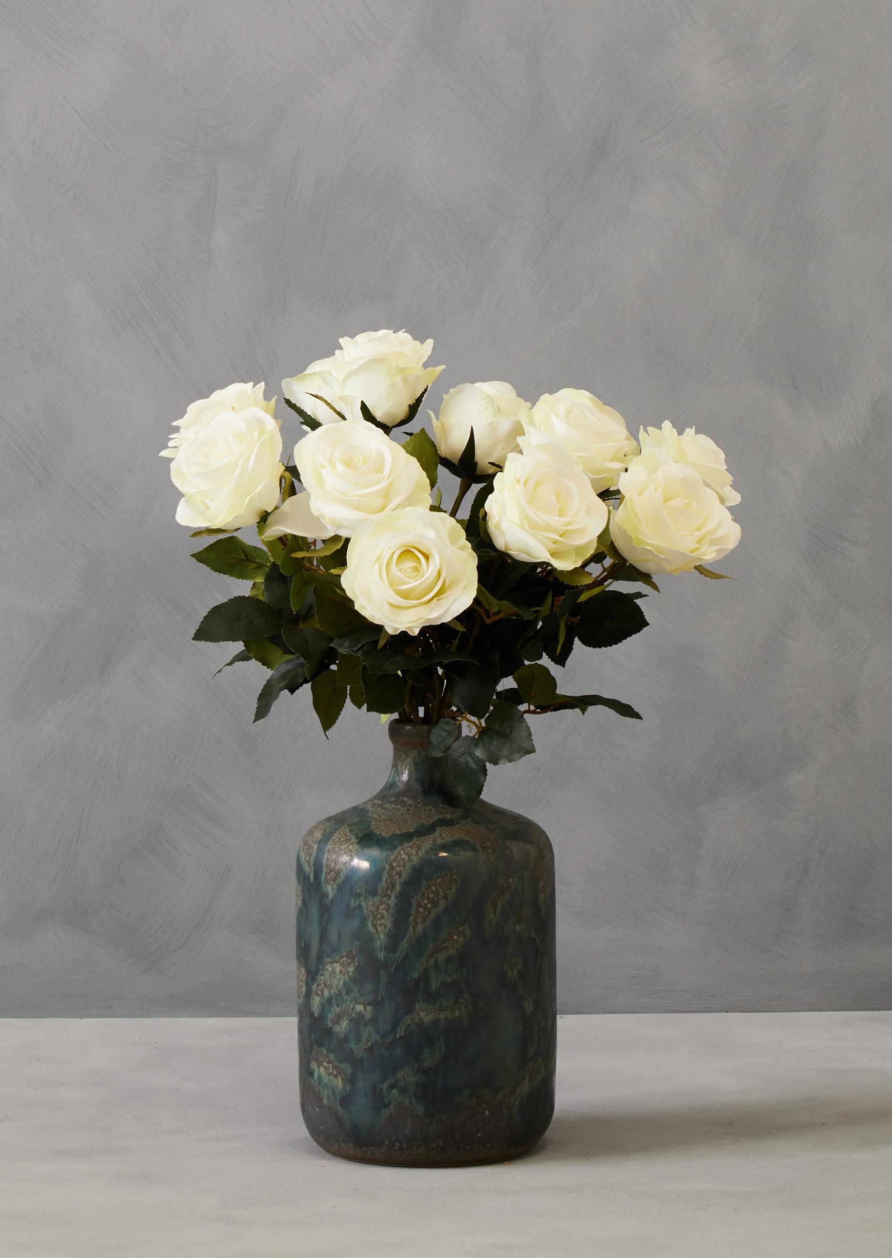FIORI WHITE ROSE W15 X D15 X H57CM | 2907010 SILAS GREEN BOTTLE VASE | 5506080 14 FIORI