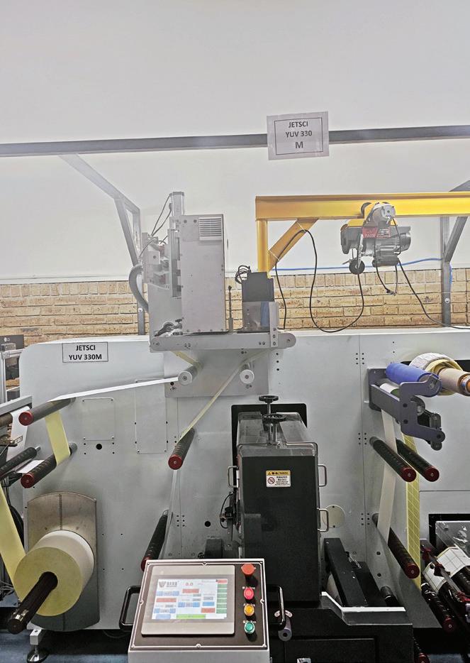 cleaning unit, and Xeikon CX500 digital press followed by a water-based varnishing module and a slitting and waste removal unit before a wallpaper rewinder.