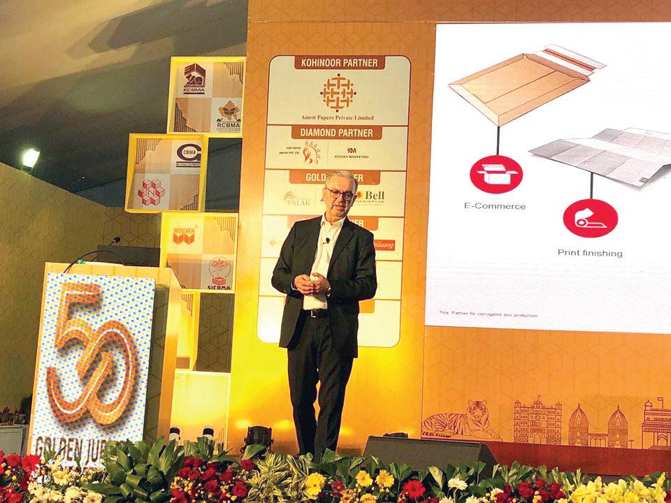 to inform them about next level in corrugated box production from Baumer hhs. To great applause, Percy Dengler pointed out in his speech the future challenges and the change of the Indian market and presented the solutions from Baumer hhs, such as the modular CorrBox Solution system.