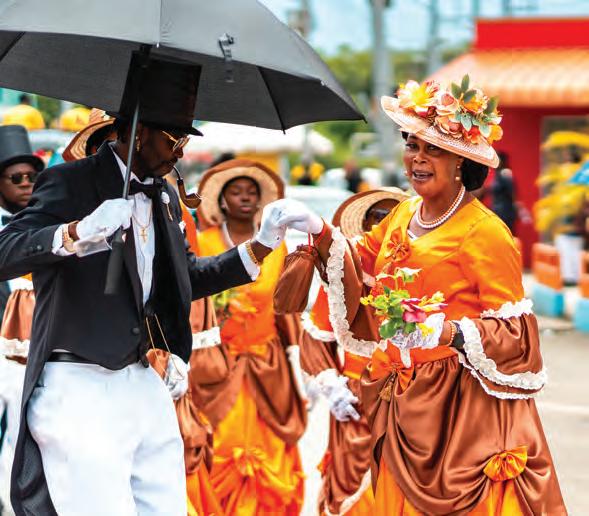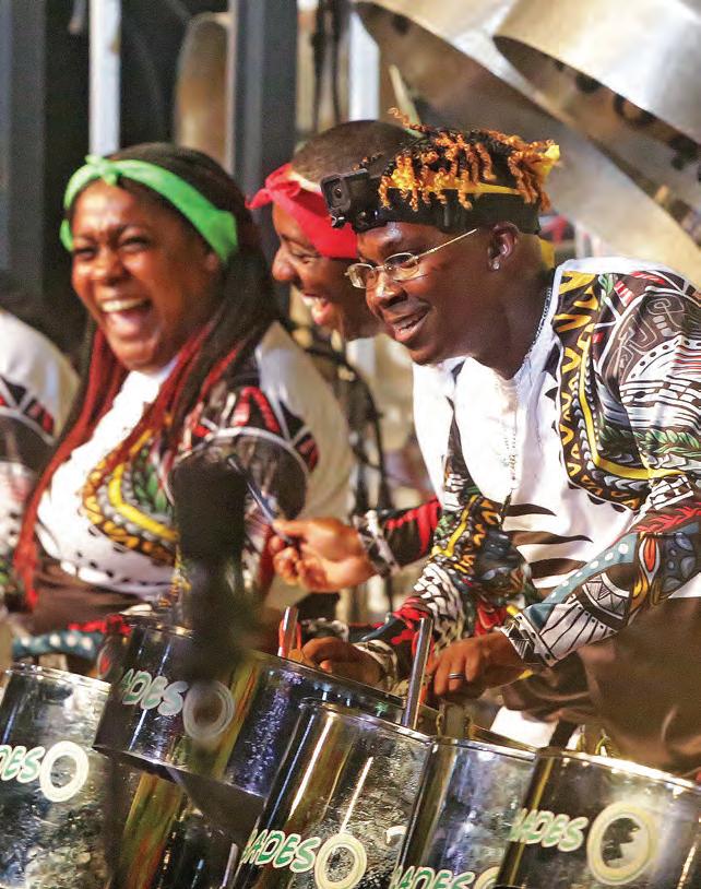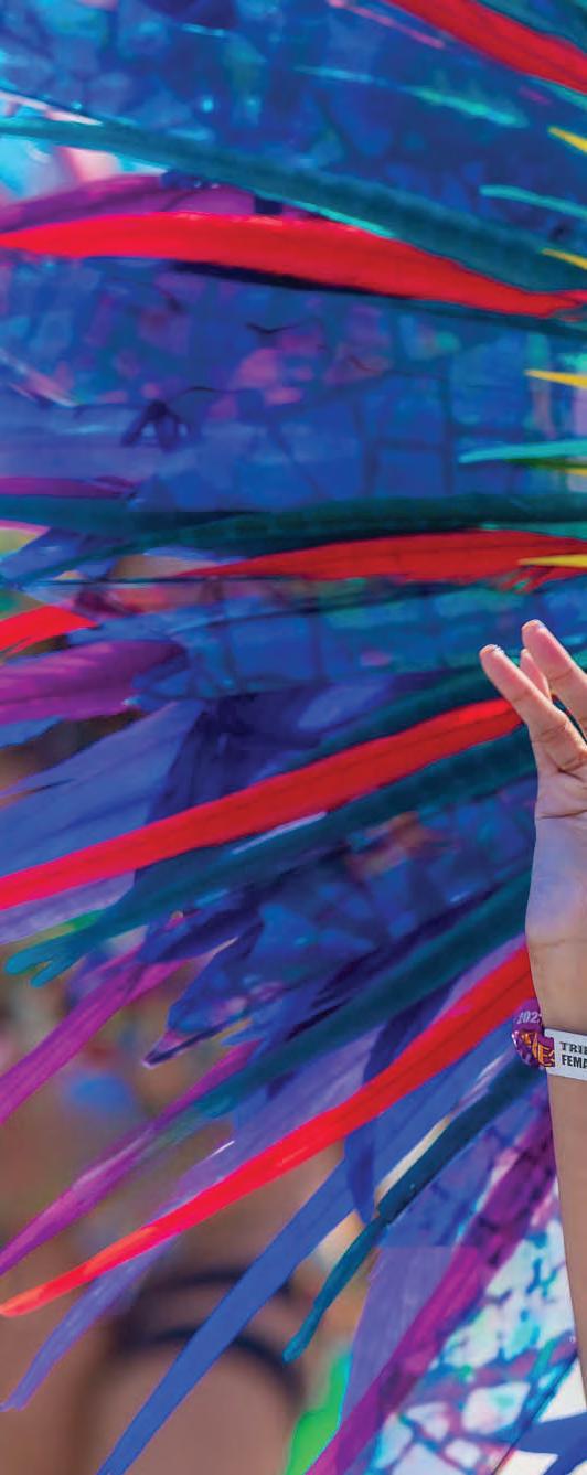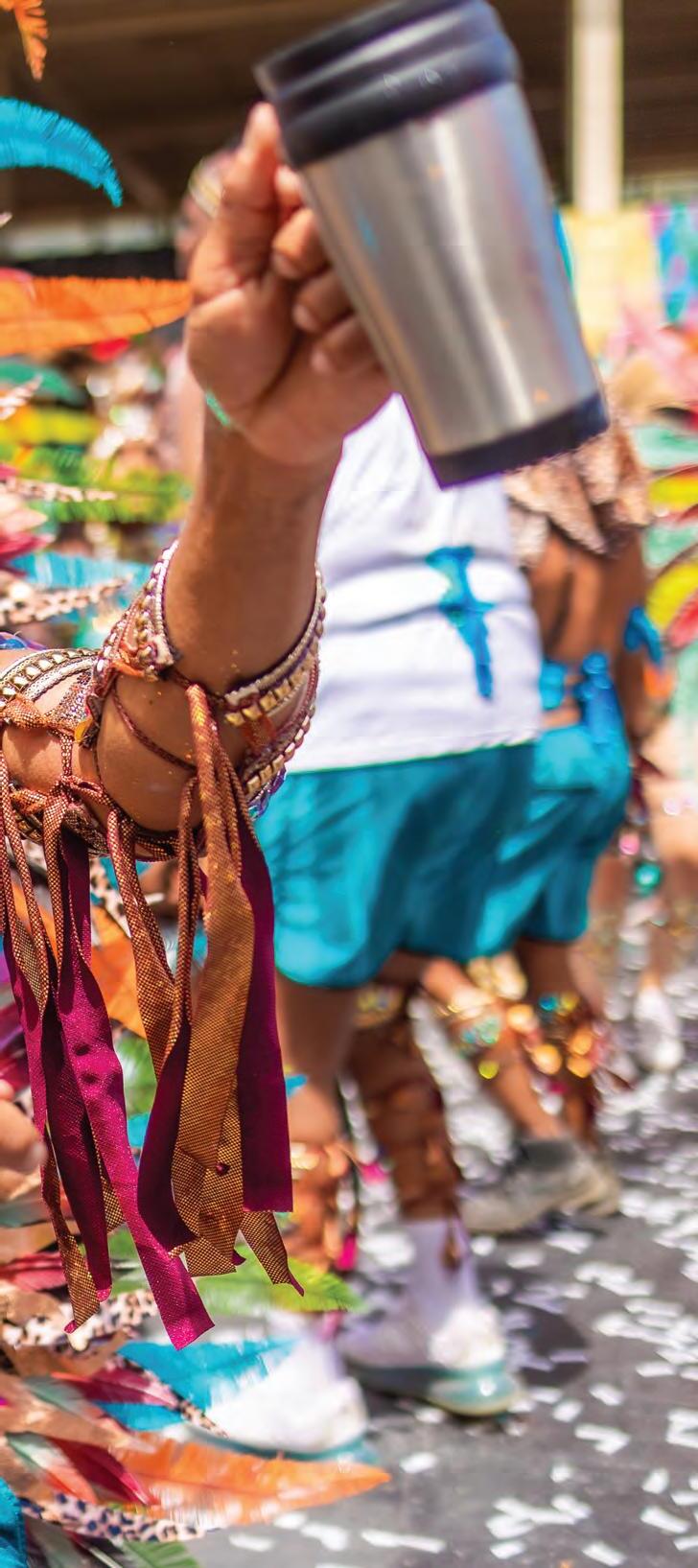 Yet, Trinidad's festivals are not just about gastronomy; they're an explosion of music, fashion, and cultural expression. Carnival exempli es this, with its almost endless parades, pulsating rhythms of calypso and soca music, and the elaborate costumes that transform the streets into a vibrant canvas of jubilation, colour, and creativity.
