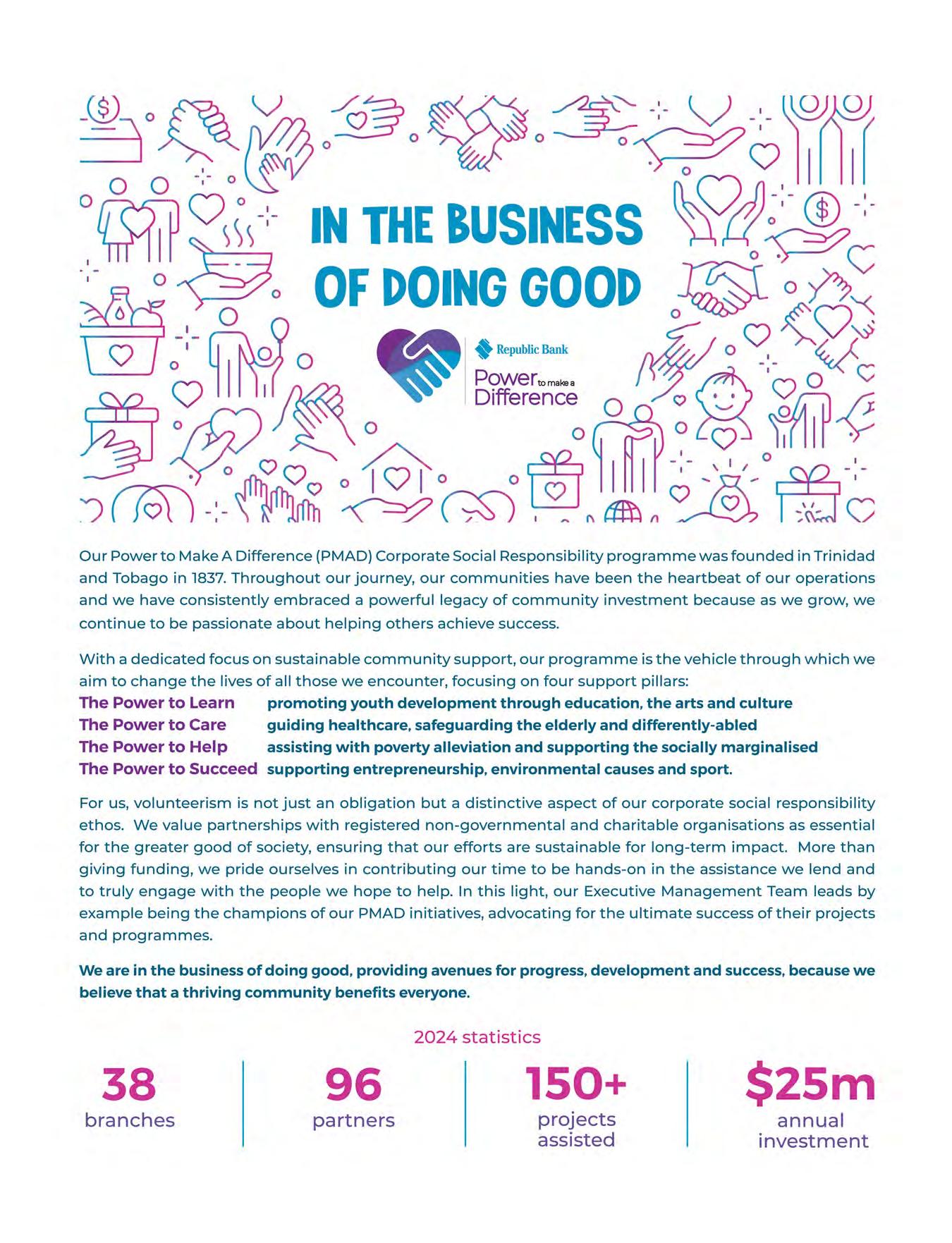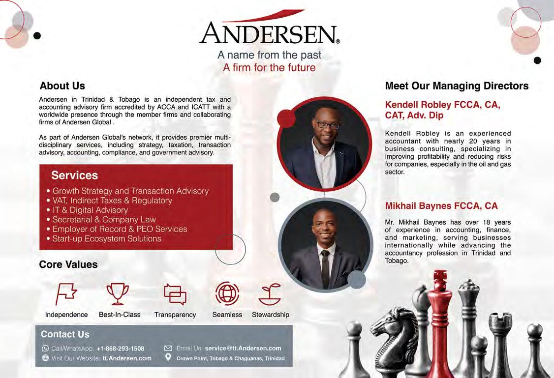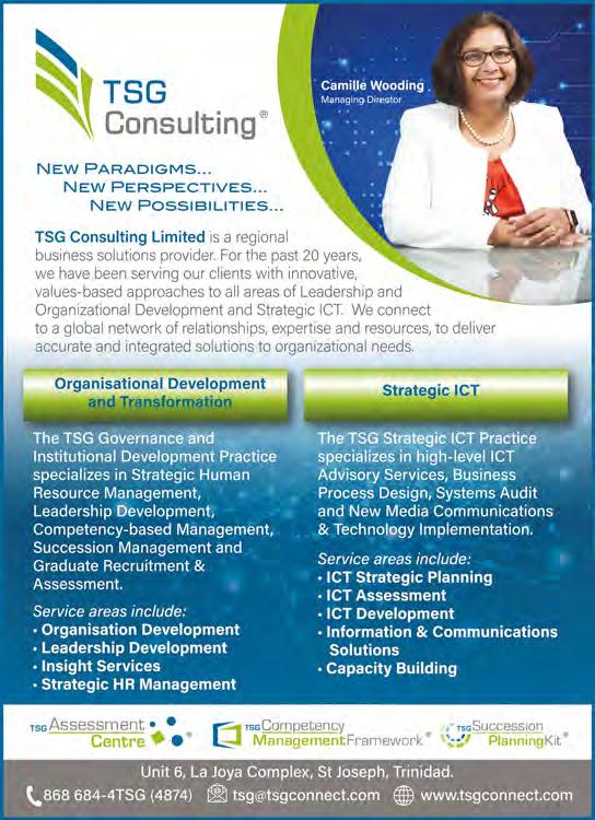 ripe for growth and the entrepreneurial spirit that drives our economy. Through compelling success stories, we aim to inspire and motivate our readers to seize opportunities that can lead to innovation, collaboration, and success. Our commitment to celebrating the achievements of local businesses remains steadfast. We recognise the resilience and creativity of Trinidadians and Tobagonians, and we are honoured to showcase the individuals and organisations that contribute to our vibrant business community. Together, we can foster an environment that supports and propels our economy forward. We invite you to dive into this edition with an open mind and a spirit of exploration. May the insights you gain inspire you to look toward the future with optimism and determination. Thank you for being a part of the “Who’s Who in Trinidad and Tobago Business 2024-2025.” We look forward to embarking on this journey with you as we uncover the insights and opportunities that await.