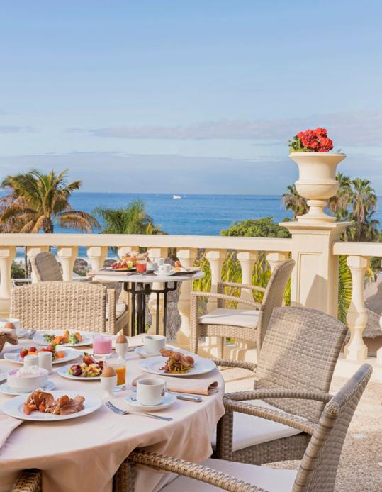 Sumptuous buffet breakfast at El Mirador restaurant. Also for dinner, with some waiter service. À la carte lunch at La Pergola. Gourmet Canarian restaurant El Cenador, or La Pergola for dinner (open on rotation). Dress code, gentlemen requested to wear long trousers. Las Pardelas snack bar and La Tosca bar with live music. Heated pool, club house with library, free Wi-fi. Sensations spa with indoor heated pool with circuit, Jacuzzi and Hammam.