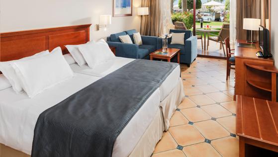 Spacious junior suites and suites, (mostly doubles), and most with a seaview. Suites have a separate lounge. VIP “La Balconada” is a separate area that offers extras including private pool area, Jacuzzis, snack bar, (free drinks from 10.00am-7.00pm), afternoon tea and free entrance to the spa water circuit, à la carte breakfast and premium drinks in the bar from 7.00pm-10.00pm.