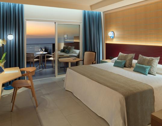 Junior Suites (photo) and Suites with garden, pool, side seaview or full seaview. Larger, ground floor Deluxe or Grand Junior Suites. Preferred Club facilities include private lounge, butler service, exclusive area in restaurant and hors d’oeuvres and drinks.