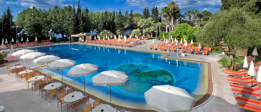 Main restaurant and terrace for breakfast, half board buffet meals and additional à la carte menu. La Bussola à la carte Mediterranean restaurant. Promenada à la carte Japanese and Asian fusion restaurant. Terrazu sul Mare Lounge Bar & Restaurant. Bracera pool bar. Ensenada beach bar. 24-hour lobby bar and lounge. Three outdoor adult pools and one children’s. Three indoor pools including one for children. Free sunbeds and towels at both. Private sand-shingle beach in front of hotel with free sunbeds and parasols. Splendid spa with huge wellness and spa area. Water therapies, personal steam rooms and sauna temple. Adjacent sports centre. Children’s club for three years and above. Regular evening entertainment. Free Wi-fi.