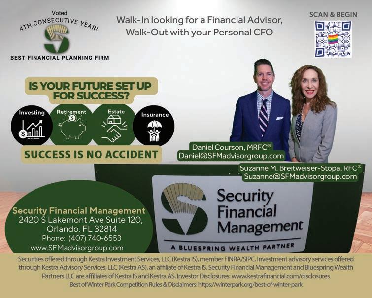 beautiful and historic community with big shade trees and activities to entertain various ages and interests. Don’t miss out on the 66th Winter Park Festival and learn more at wpsaf.org.