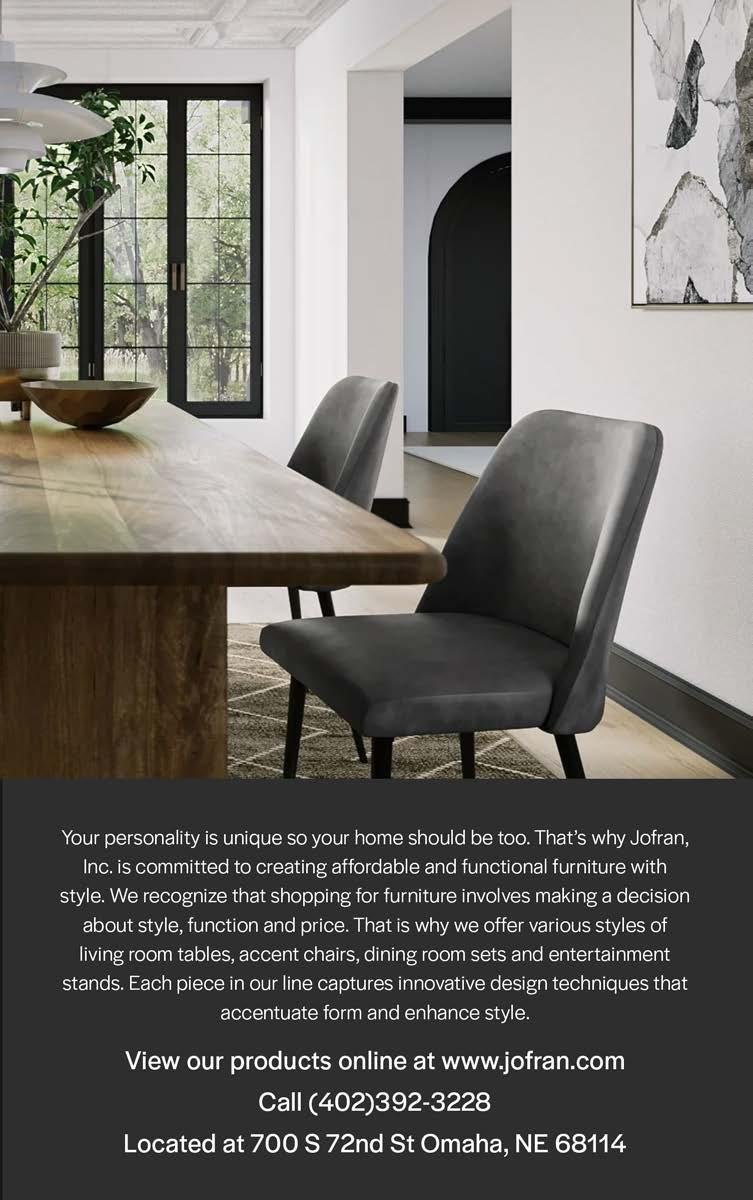 20 | OMAHA | NE APARTMENT HOMES Sundance Omaha 17 AUTO CARE Omaha Car Care back outside cover BOUTIQUE Miava Boutique 3 BUSINESS Meridian Business front cover COMPUTER REPAIR Schrock Innovations 17 DENTAL City View Dental back inside cover DERMATOLOGY Midlands Dermatology 17 EDUCATION Omaha Education Association 2 FOOTWEAR Peak Performance Running Store 13 FURNITURE Jofran Inc. 8-9 INTERIOR DESIGN JC Design 13 JEWELRY Sol’s Jewelry/Loan 3 LAW Goodman Law Firm 11 LGBTQ+ Omaha For Us 3 RESTAURANT J Gilbert’s 2 SHOPPING Oak View Mall 1 TECHNOLOGY Oxen Technology 11