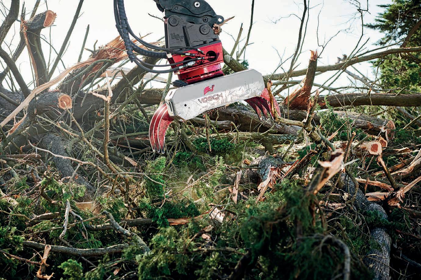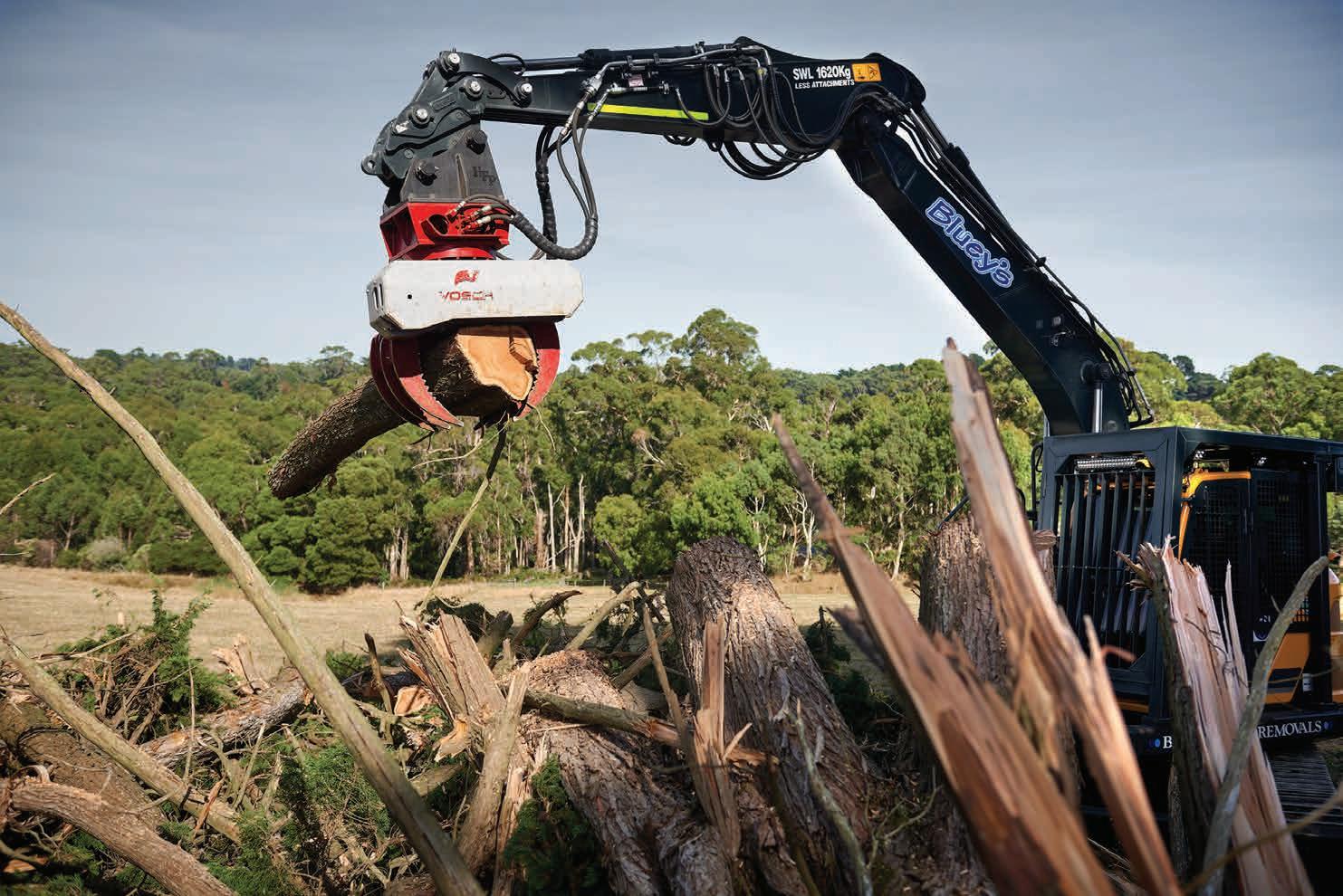 “It’s especially good for trees on the ground. We’re dropping cypress trees that are 100-foot high and four- or fivefoot diameter at the base, and you’ve got multiple leaders. With the Vosch I don’t need to put anyone in there with a chainsaw. I just pick the whole tree apart, basically back to a trunk, and I do the whole thing from sitting in the cabin. No one’s trying to climb over branches, no one’s worried about it rolling over, no one’s getting in pinch points or crush zones or anything like that. It gets the whole OH&S side of it under control…I don’t have to worry about anyone being in there. That’s a huge advantage. Not just when trees are in the air, but when they’re on the ground. No one’s in harm’s way, and it’s just so much more efficient.”