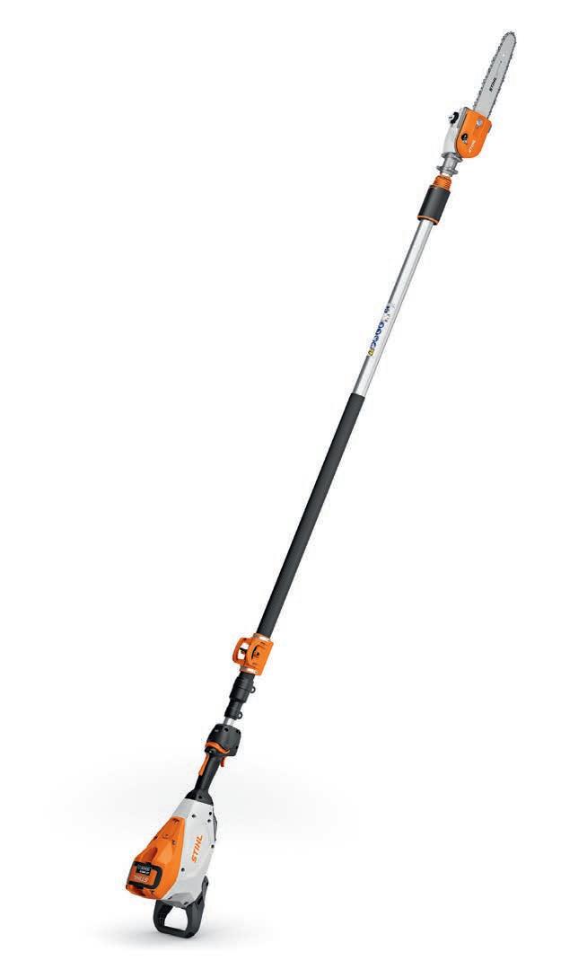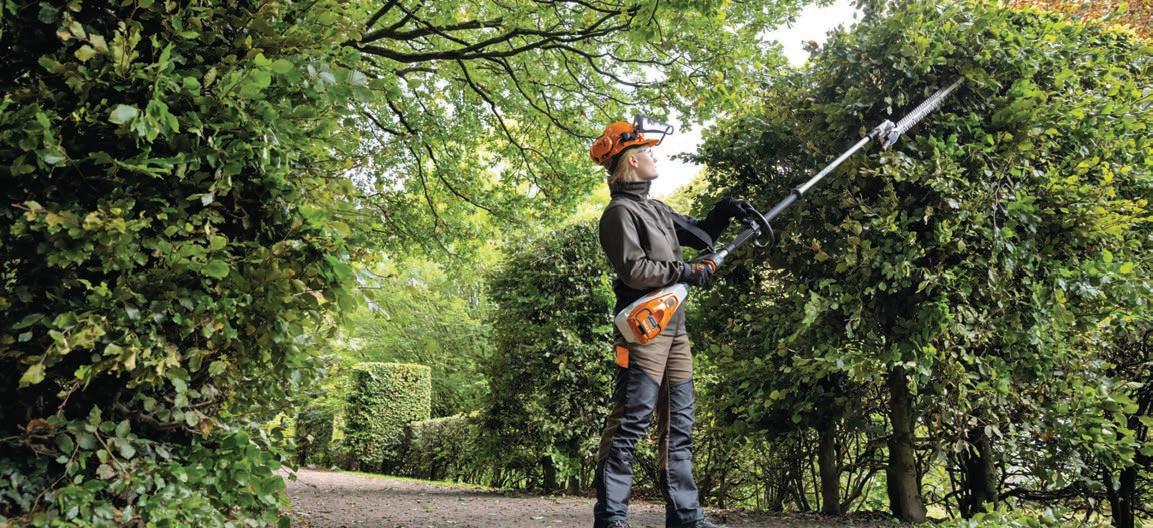 Designed with professional users in mind, the HLA 135 is STIHL’s most powerful battery long-reach hedge trimmer to date. It o ers the most powerful cut among battery hedge trimmers, making it perfect for cutting shrubs, bushes and plants, as well as trimming and pruning thick hedges at all angles. This is thanks to a 60cm/24”, 145° adjustable double-sided cutting blade, which can also be folded down parallel to the shaft for storage and transport.
