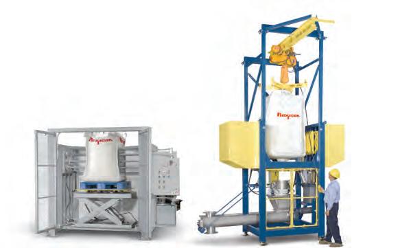 Left: Stainless Steel Bulk Bag Conditioner designed and constructed to sanitary standards. Right: Bulk Bag Conditioner integral to Bulk Bag Discharger reduces cost, footprint and loading time of separate equipment.
